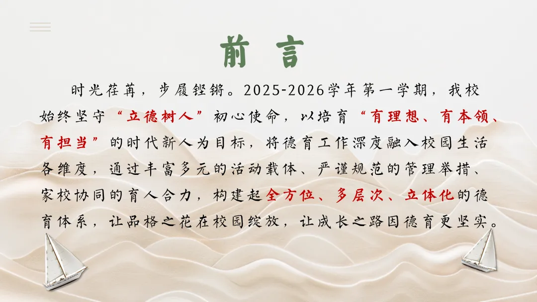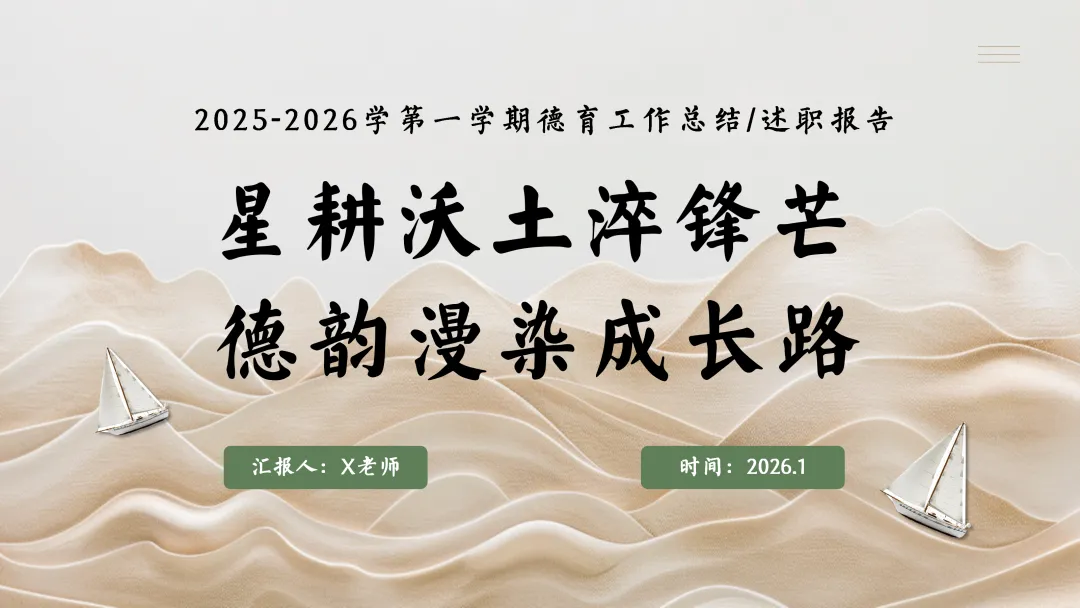 大家好,我是小诗老师!今天小诗老师给大家分享的是:学校德育工作总结PPT——星耕沃土淬锋芒,德韵漫染成长路,完整电子版可下载可编辑。高清原图无水印,可直接打印使用。完整PDF电子版网盘下载链接详见页面底部,欢迎收藏和下载。如果觉得这份资料不错,建议分享到班级群/年级群,让其他家长打印出来,帮助孩子学习。