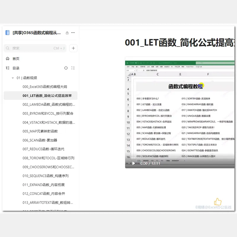呼万唤始出来,经过差不多一个月的录制,365函数式教程在原本的图文系统的基础上,新增了长达620+分钟的视频教程!