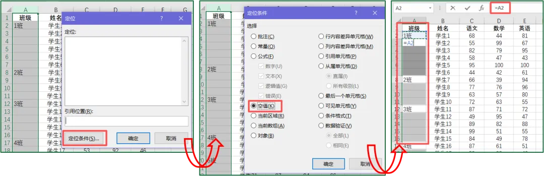 ③填充取消合并后空白单元格,组合键【Ctrl+G】,打开定位框;