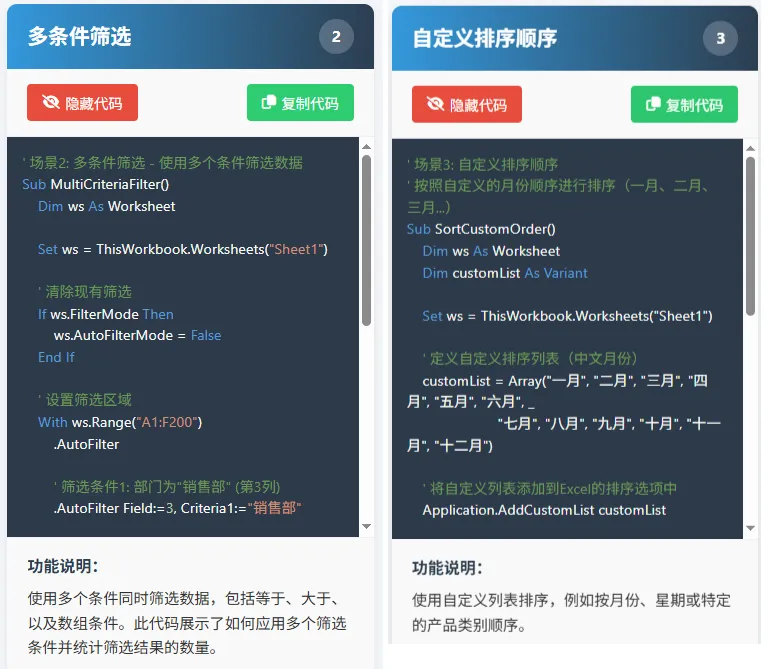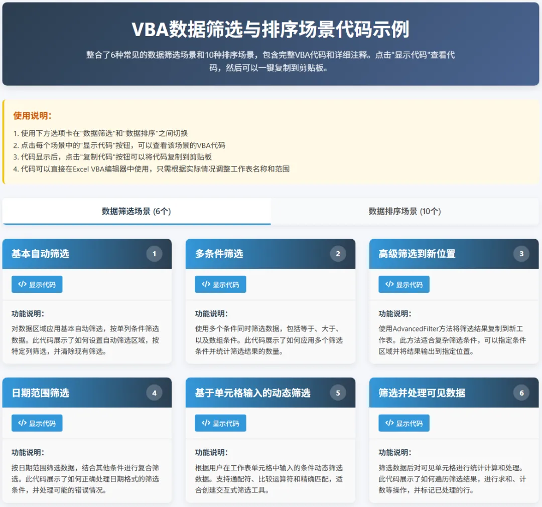 还在为Excel数据处理头疼吗?筛选、排序总是重复操作?我们为你整合了一份超实用的VBA代码库,包含6大筛选场景+10大排序场景,专为提升办公效率而生!