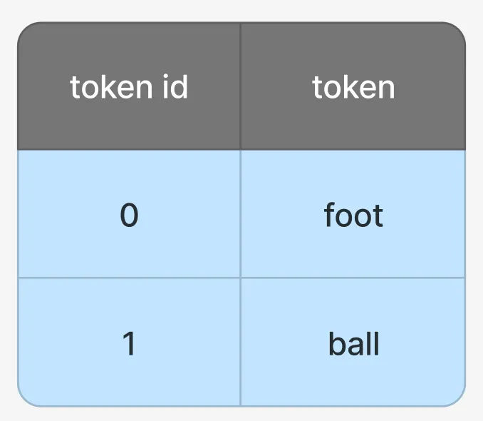 当模型输出[0,1]就是"foot","ball",如果是[0,2]则是"football"