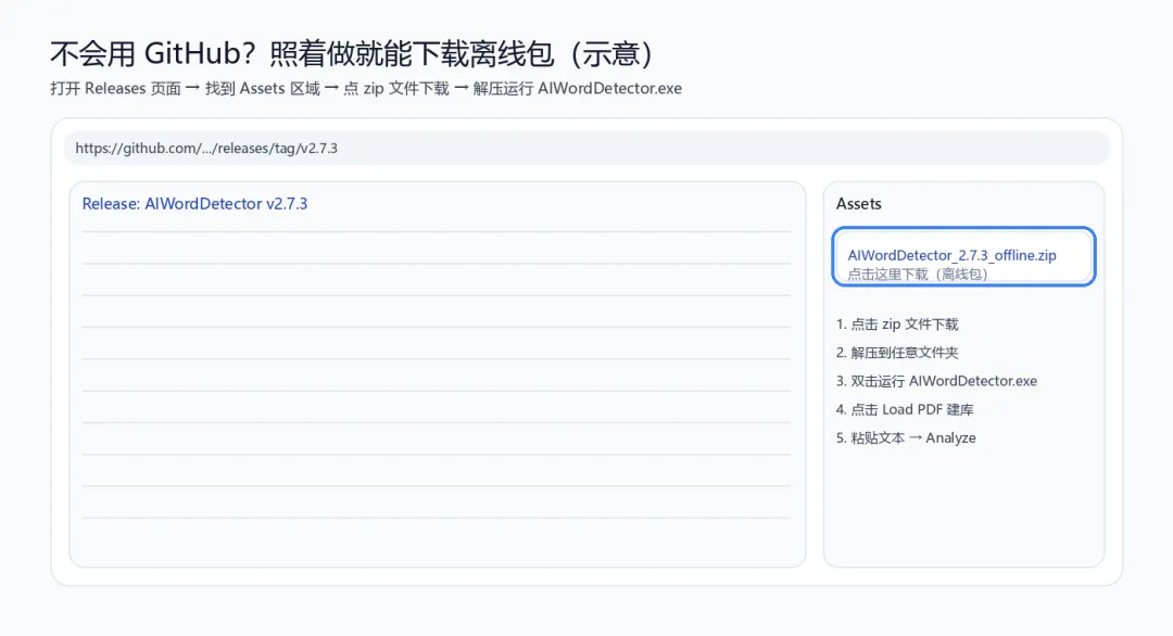 - 开箱即用离线包(Releases): https://github.com/bluesHeart/ai-word-detector/releases/tag/v2.7.3