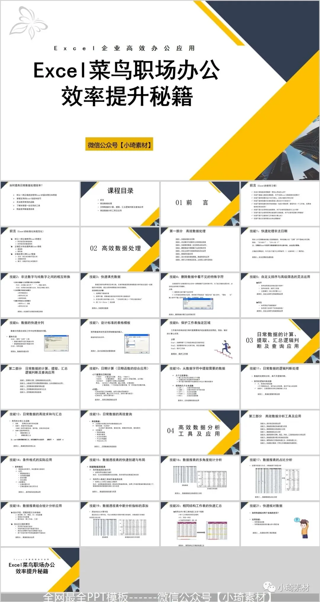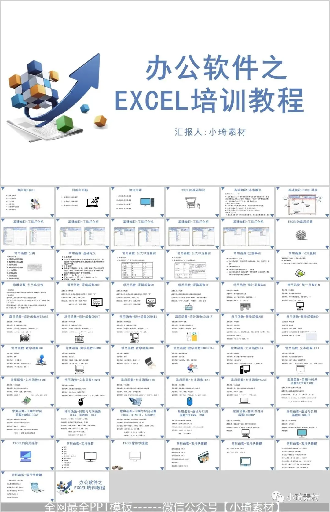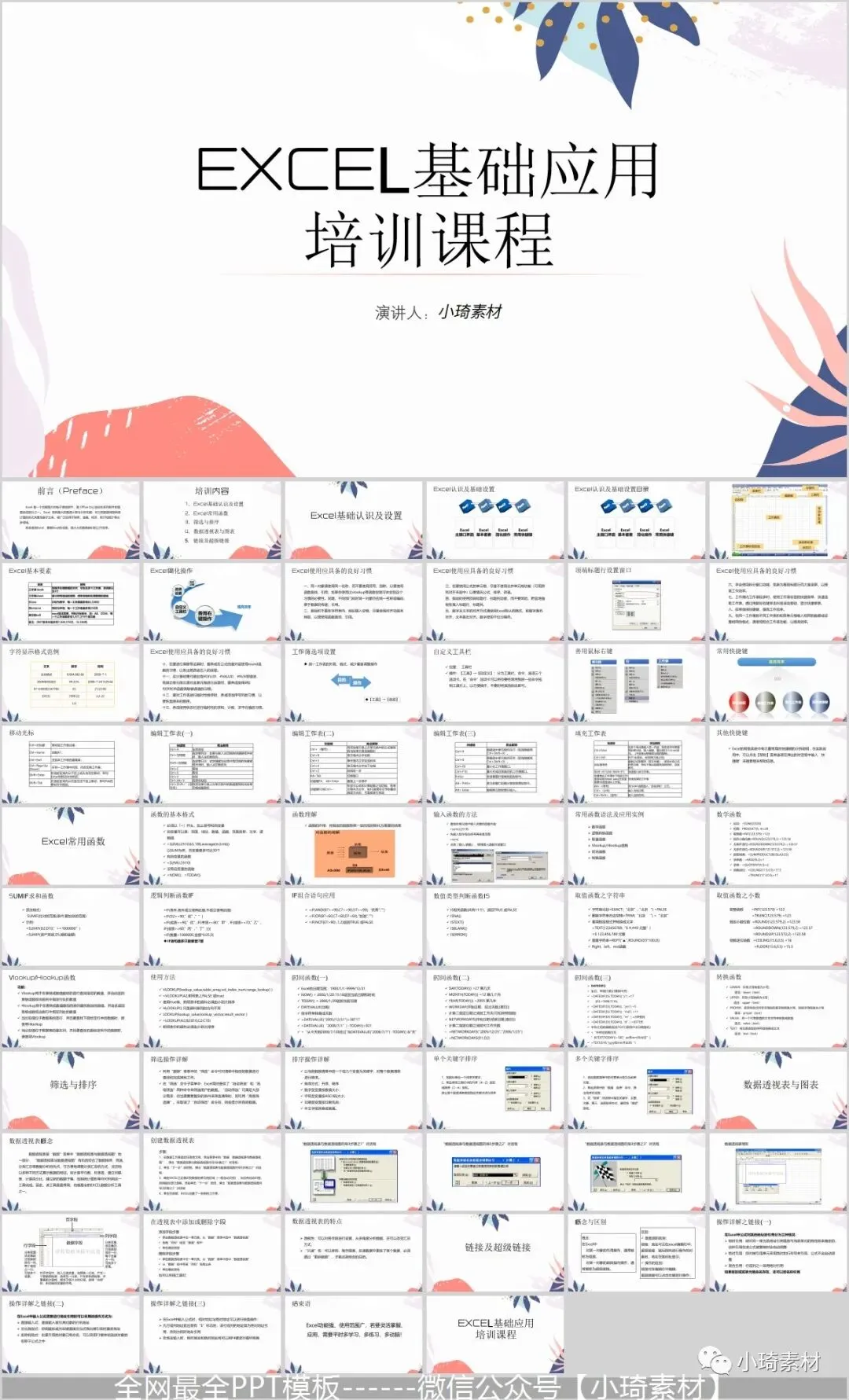 但是那个资料如果作为公司培训的话,就有点不合适了,所以这里小琦精心整理了这36套PPT格式的Excel培训课件,用PPT的格式去讲Excel是不是超nice的 !
