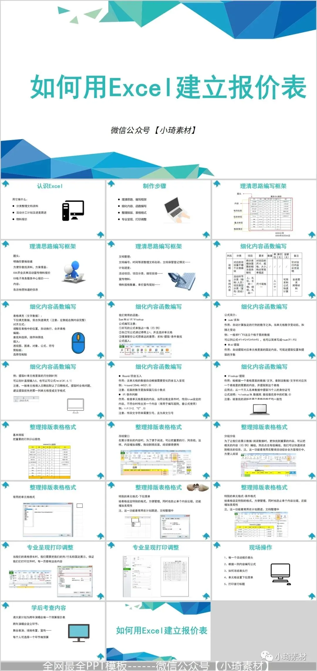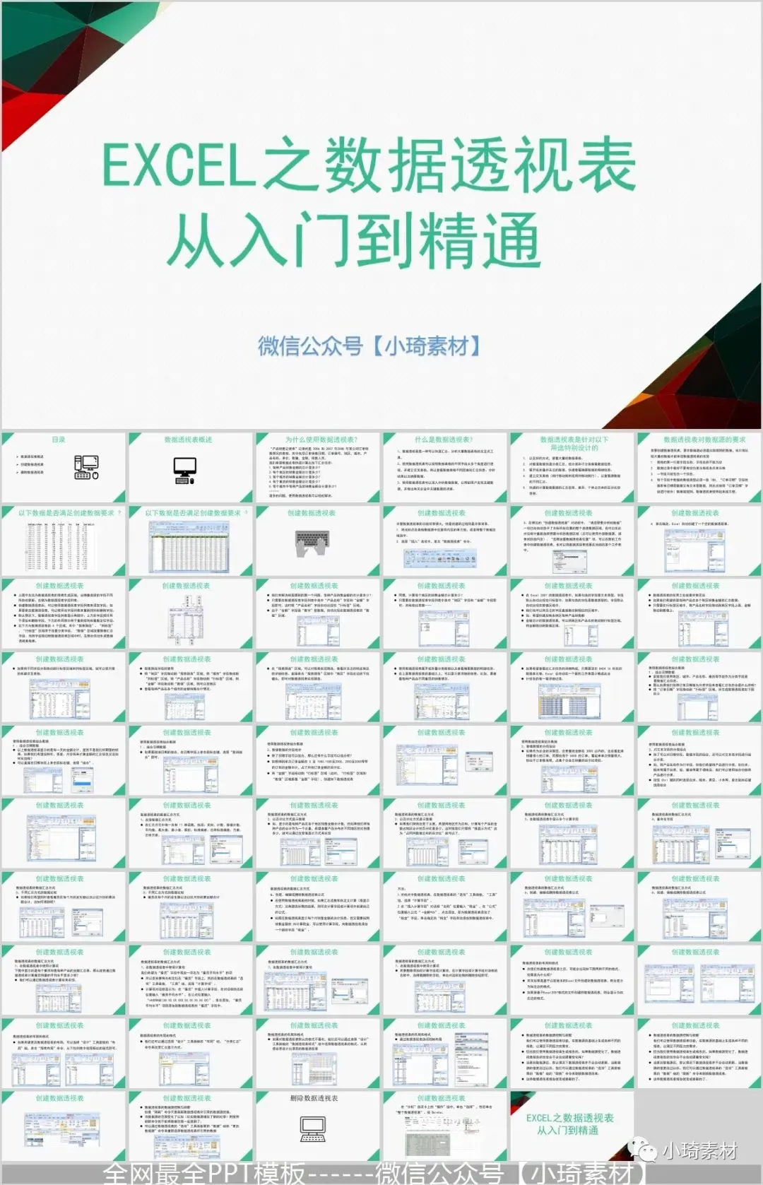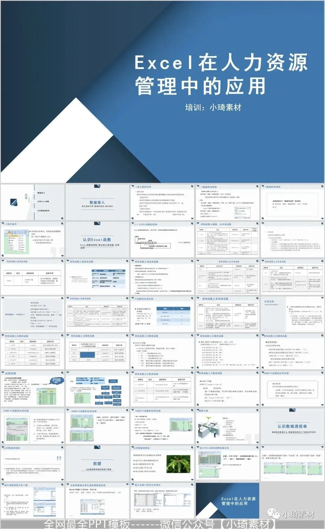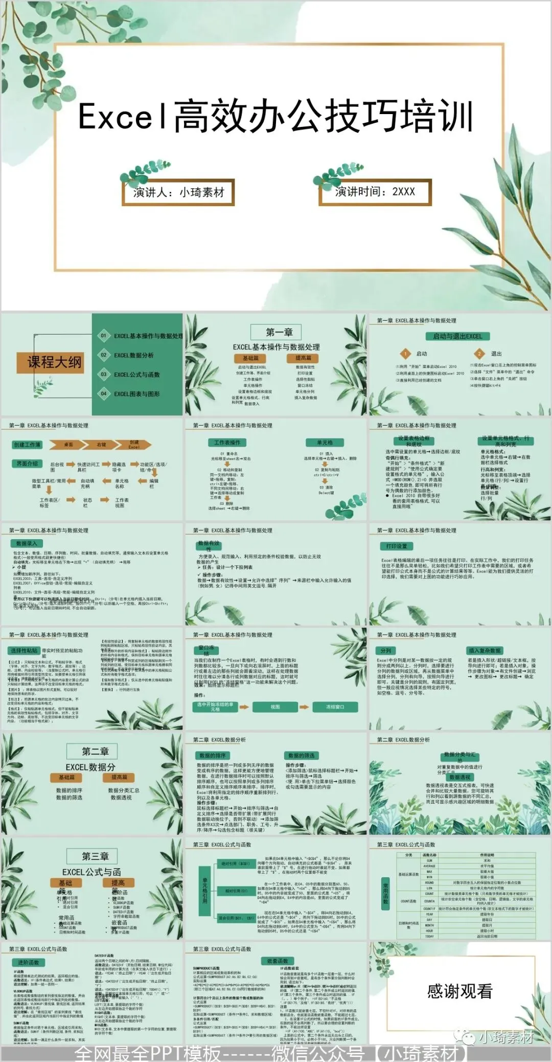 但是那个资料如果作为公司培训的话,就有点不合适了,所以这里小琦精心整理了这36套PPT格式的Excel培训课件,用PPT的格式去讲Excel是不是超nice的 !