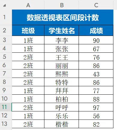 通过 “组合” 功能自动划分区间,支持多维度分析(如按班级+成绩区间),数据更新后可一键刷新,无需修改公式,适合大数据量、频繁变动的场景(如全年级成绩分析)