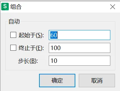 ③ 弹出「组合」对话框,按需求设置区间(如图):