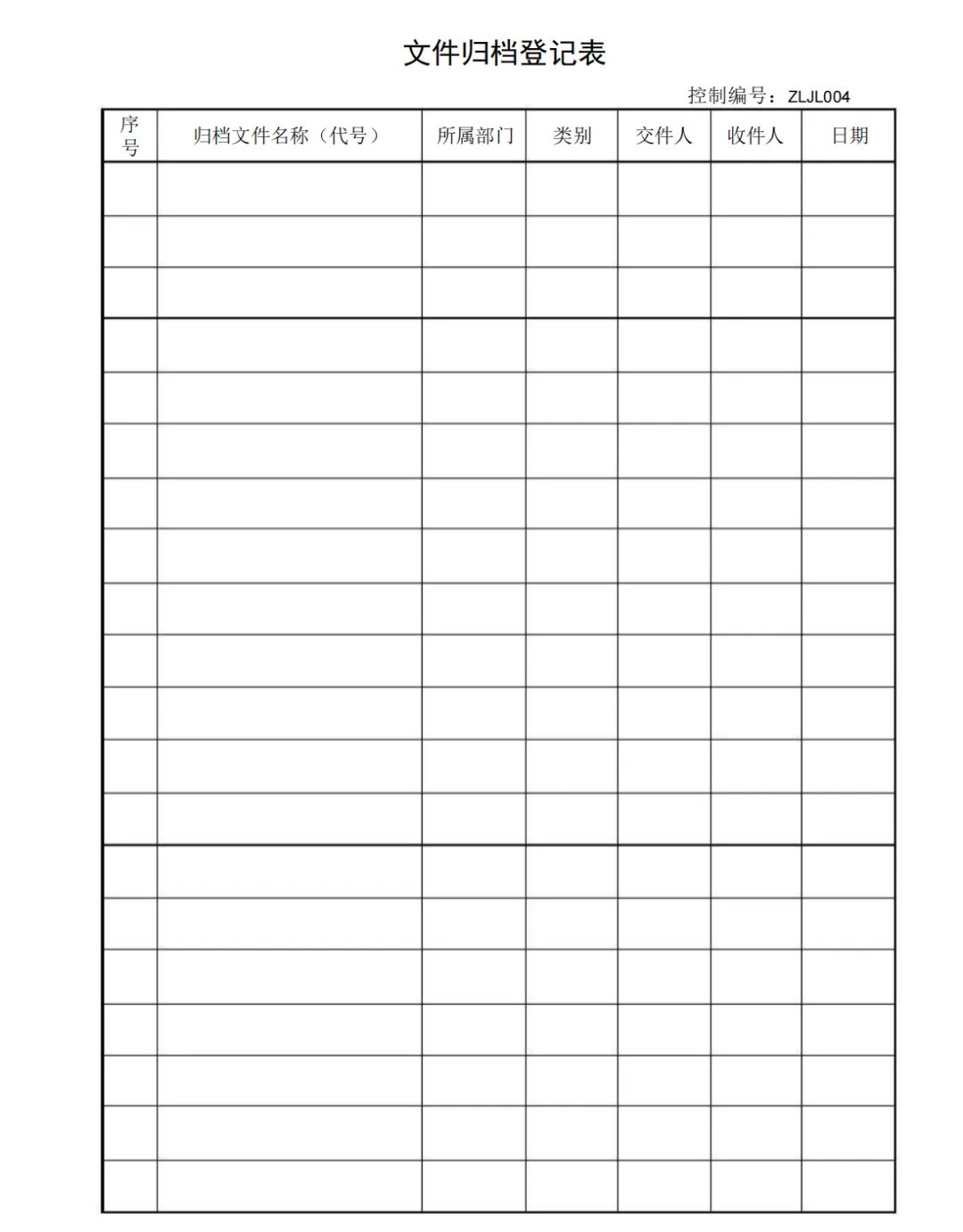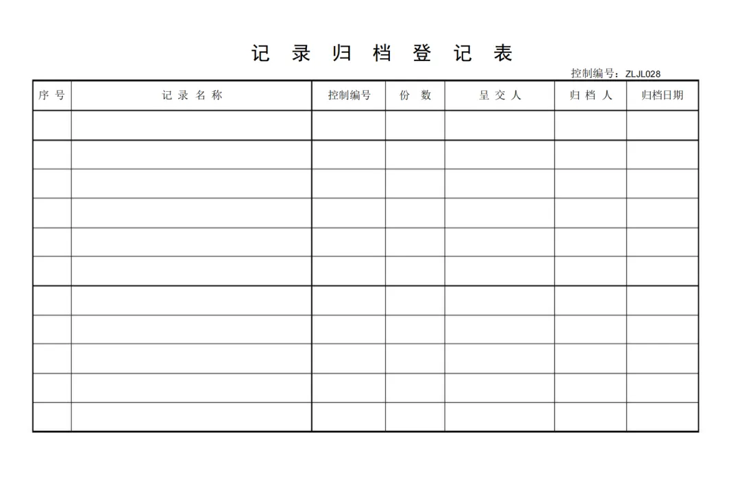 记录归档登记表