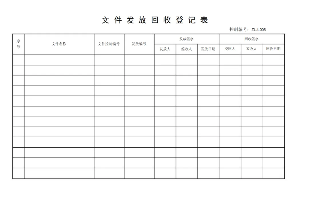 文件发放回收登记表