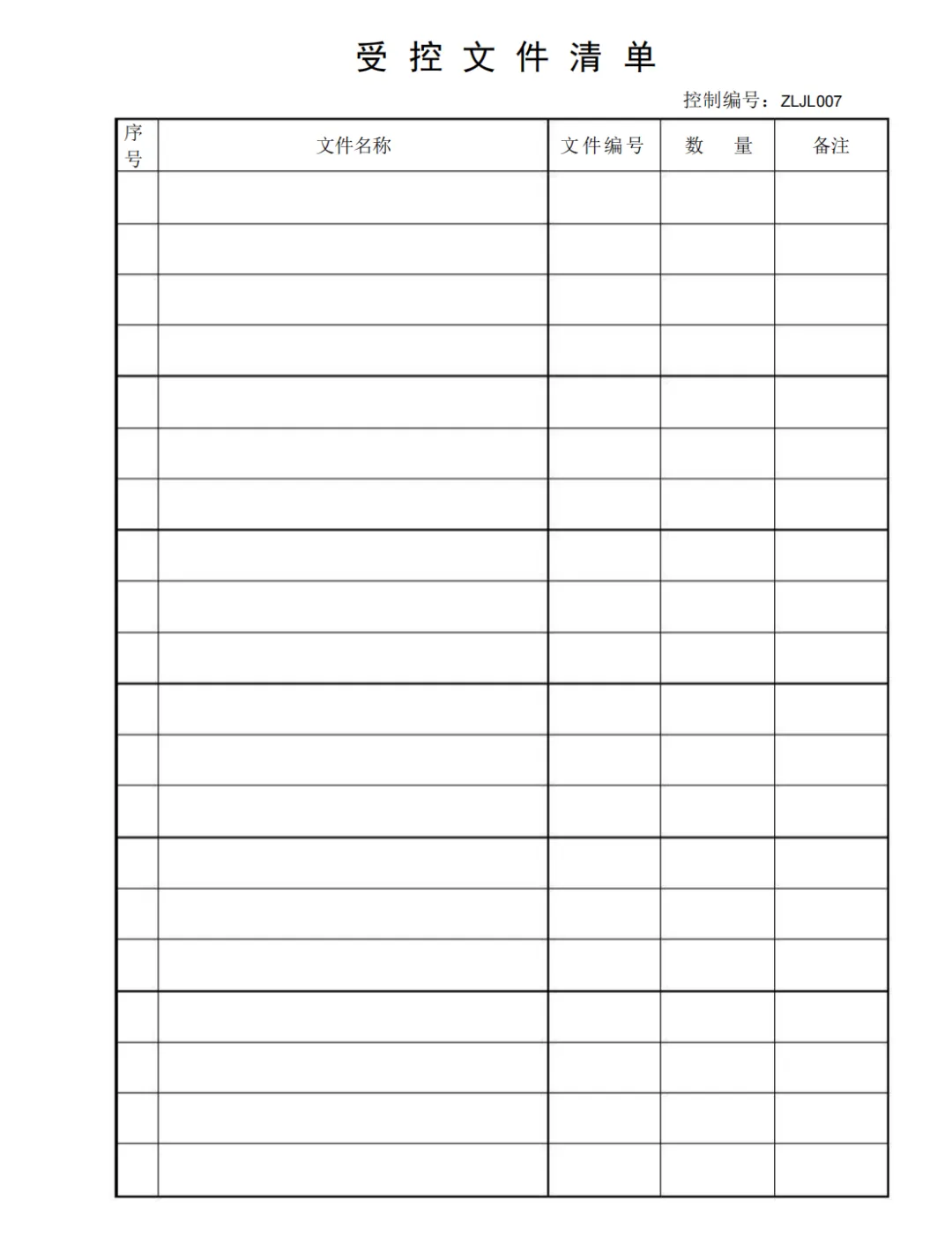 受控文件清单