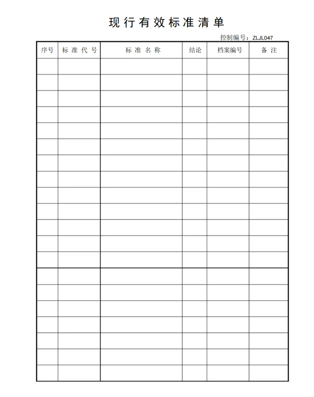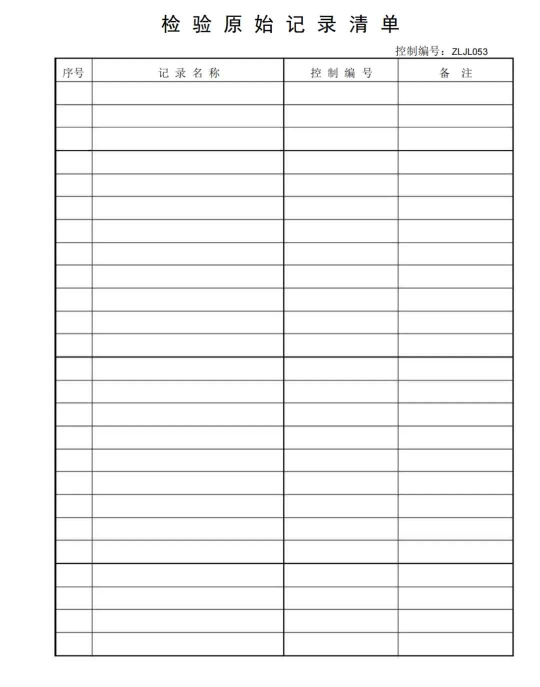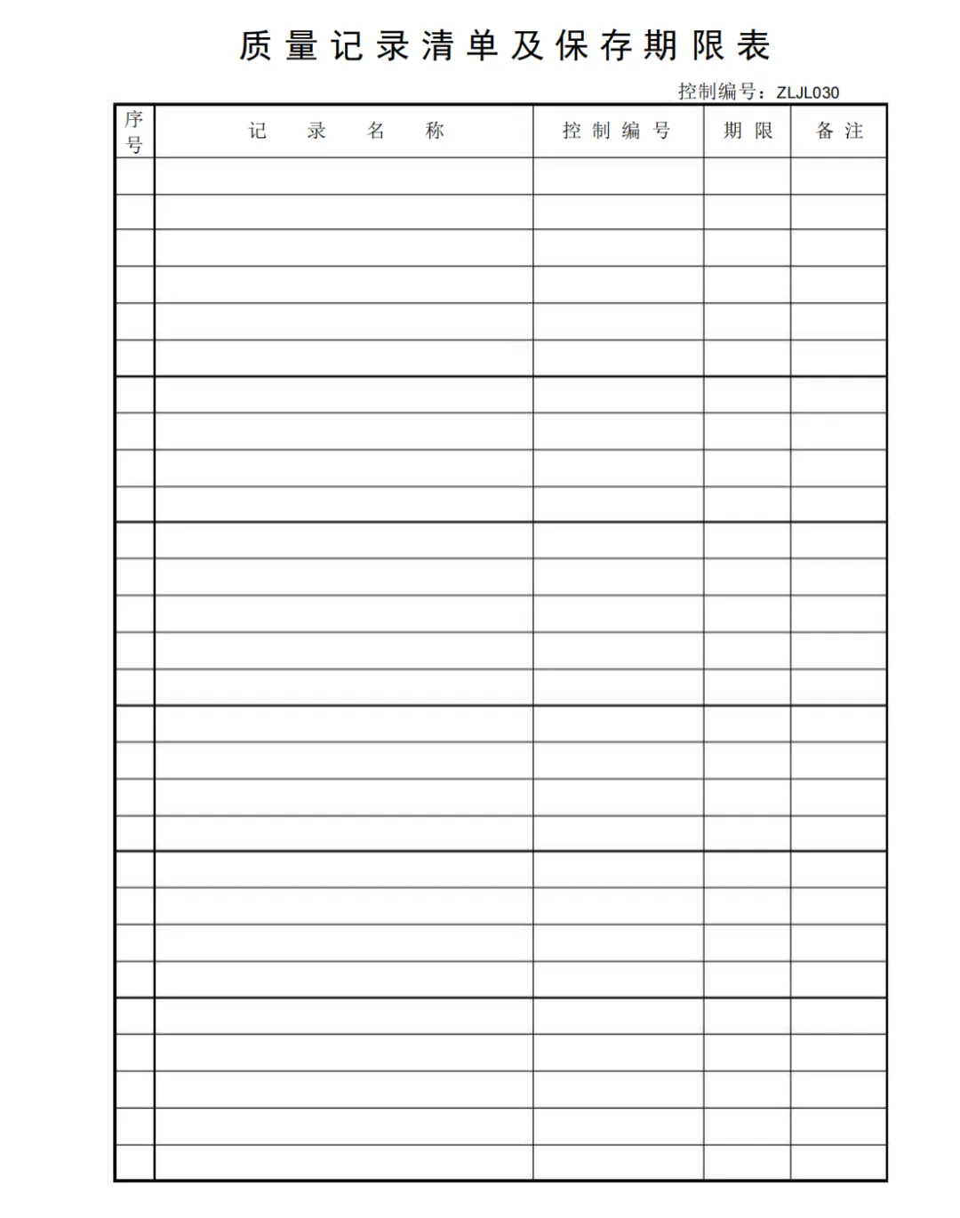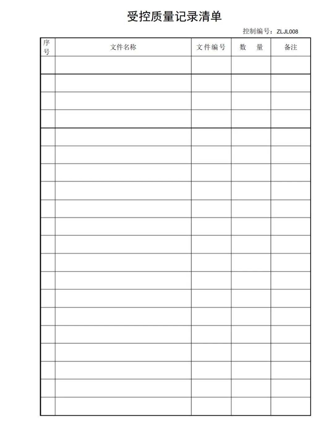 受控质量记录清单