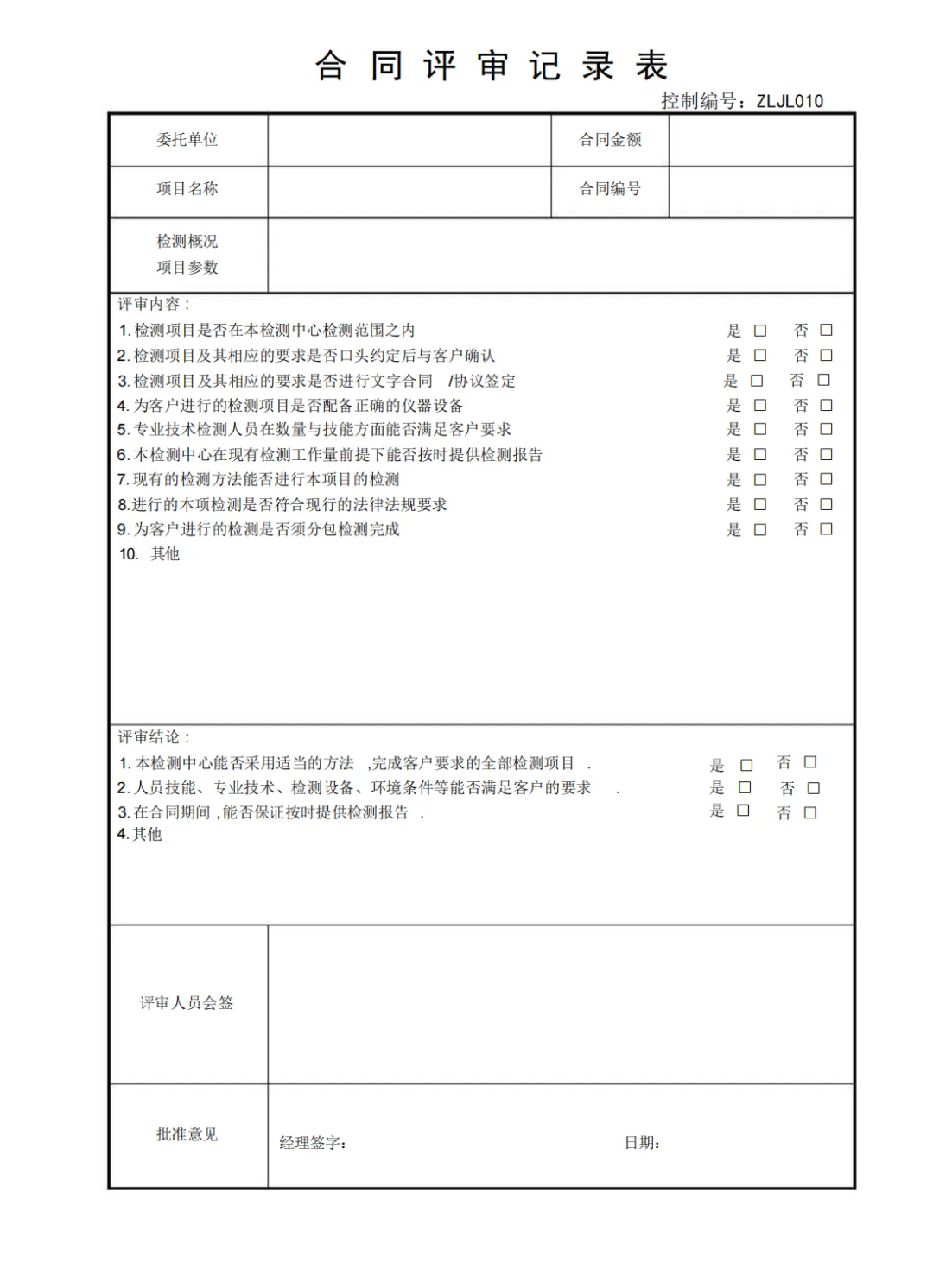 合同评审记录表
