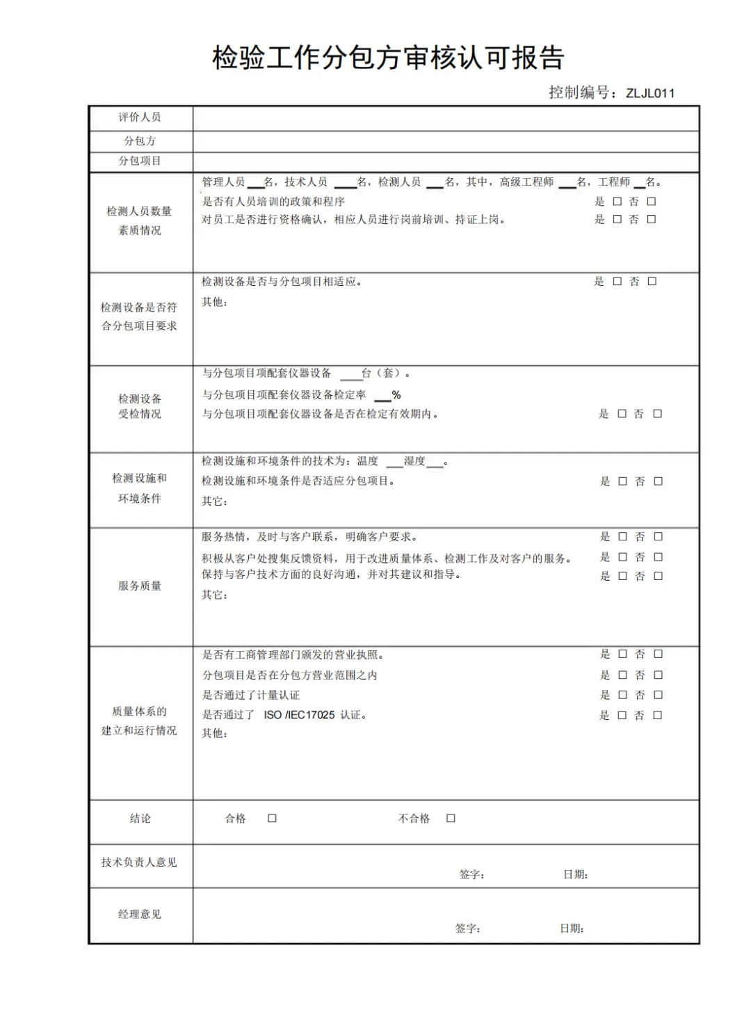 检验工作分包方审核认可报告