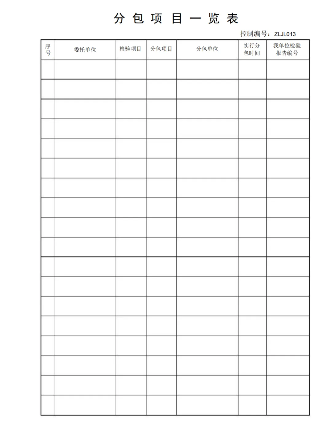 分包项目一览表