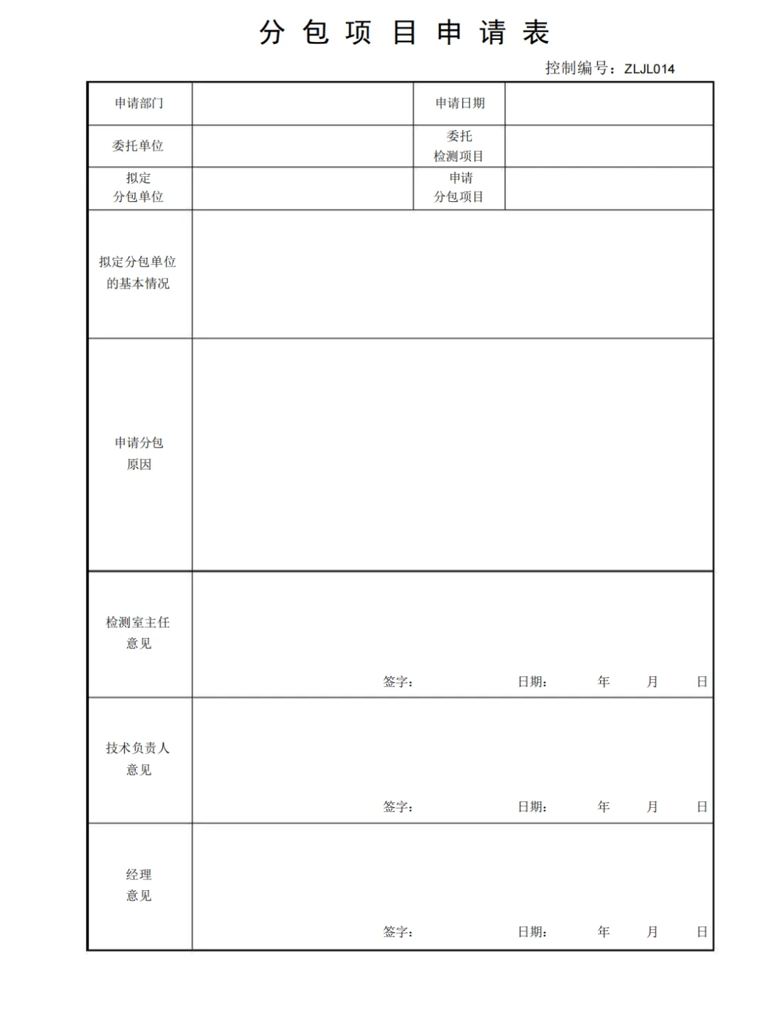 分包项目申请表