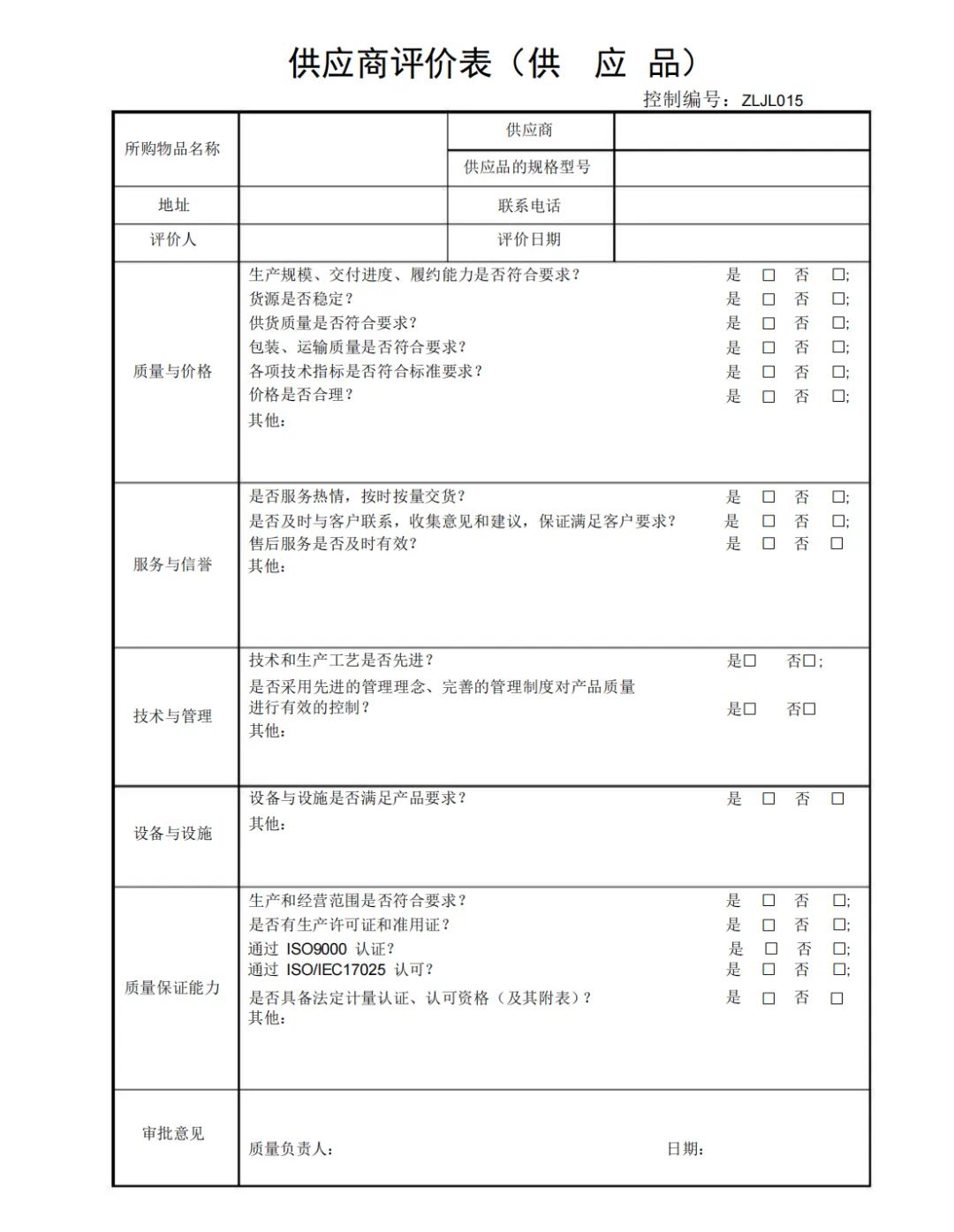 供应商评价表(供应品)