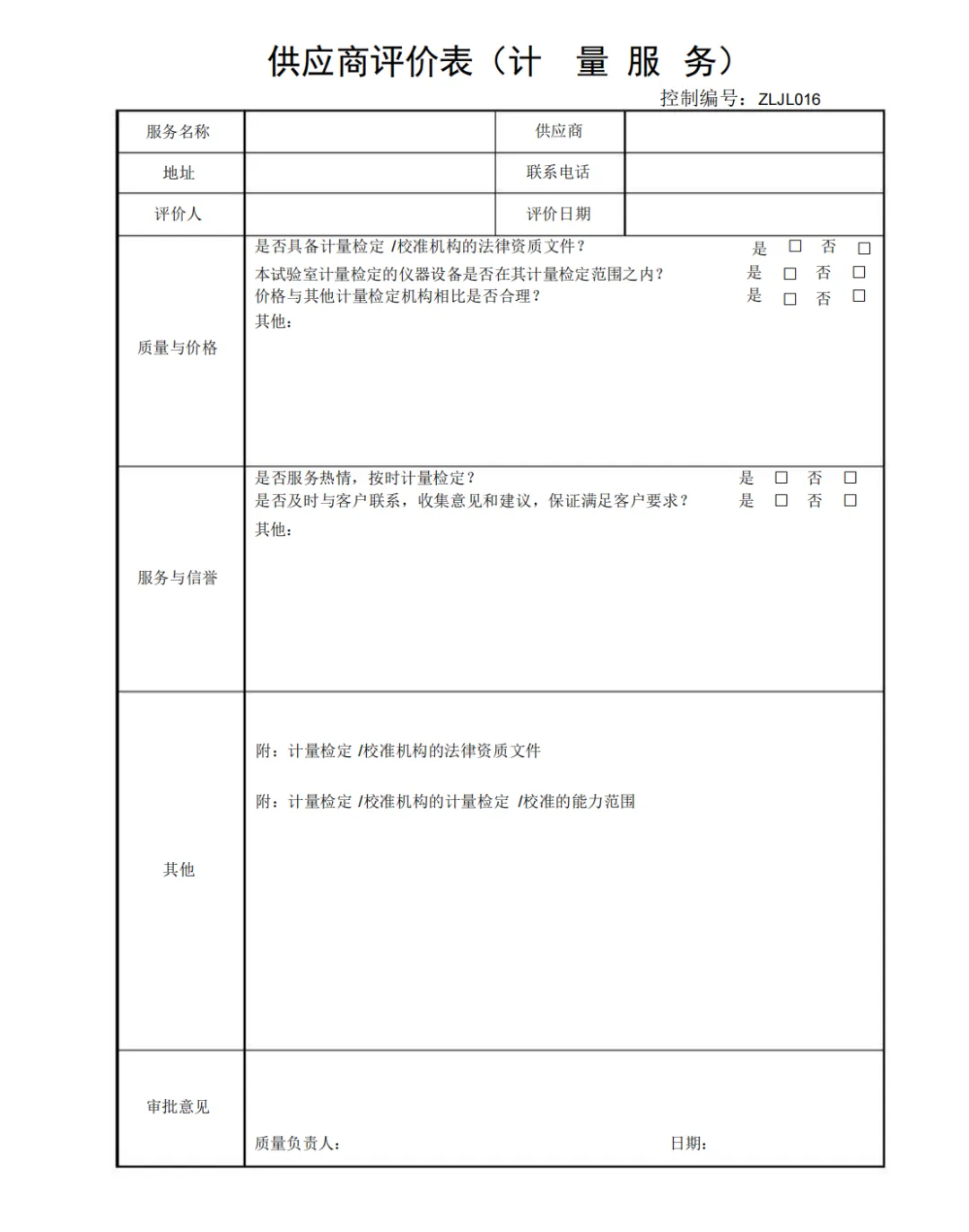 供应商评价表(计量服务)