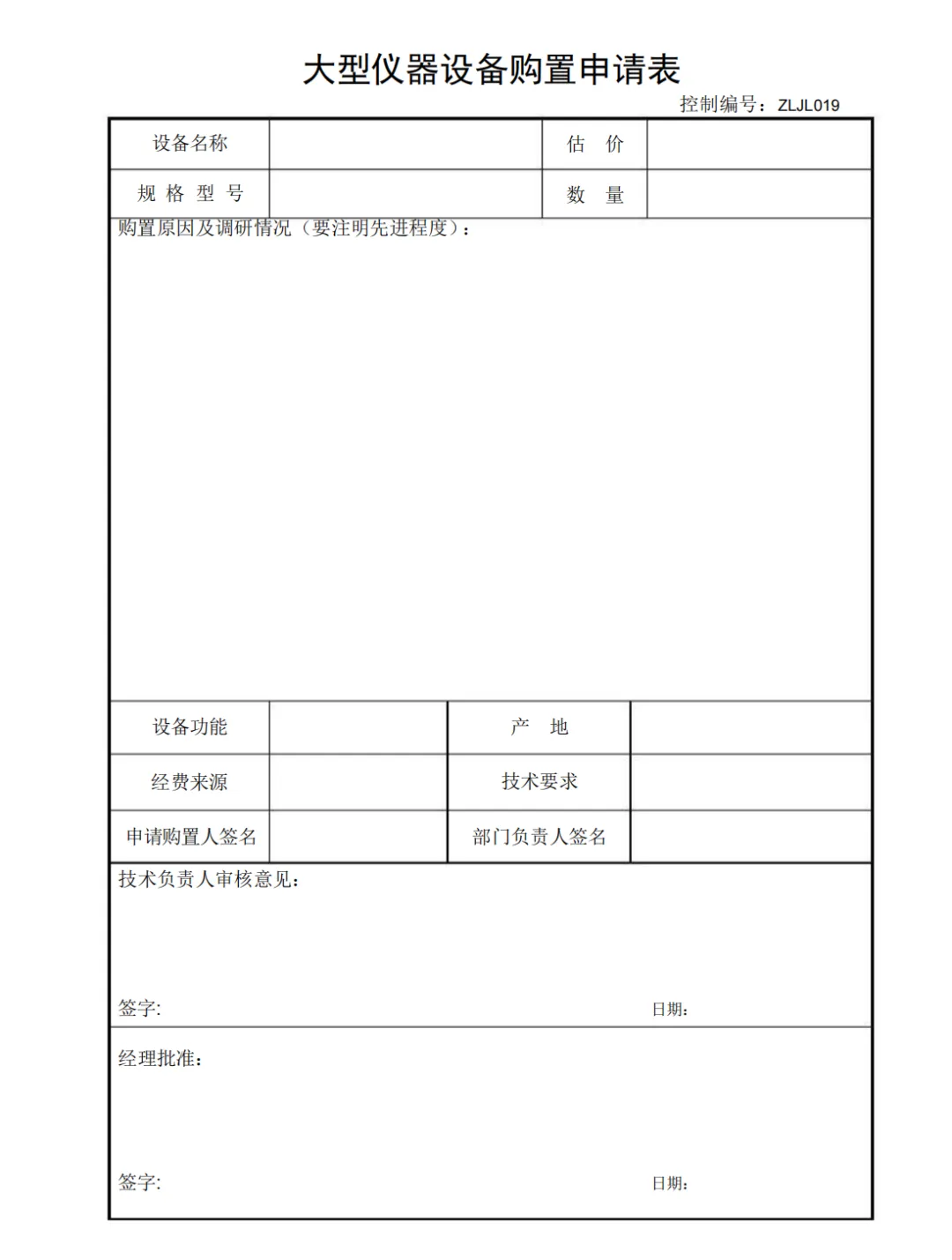 大型仪器设备购置申请表