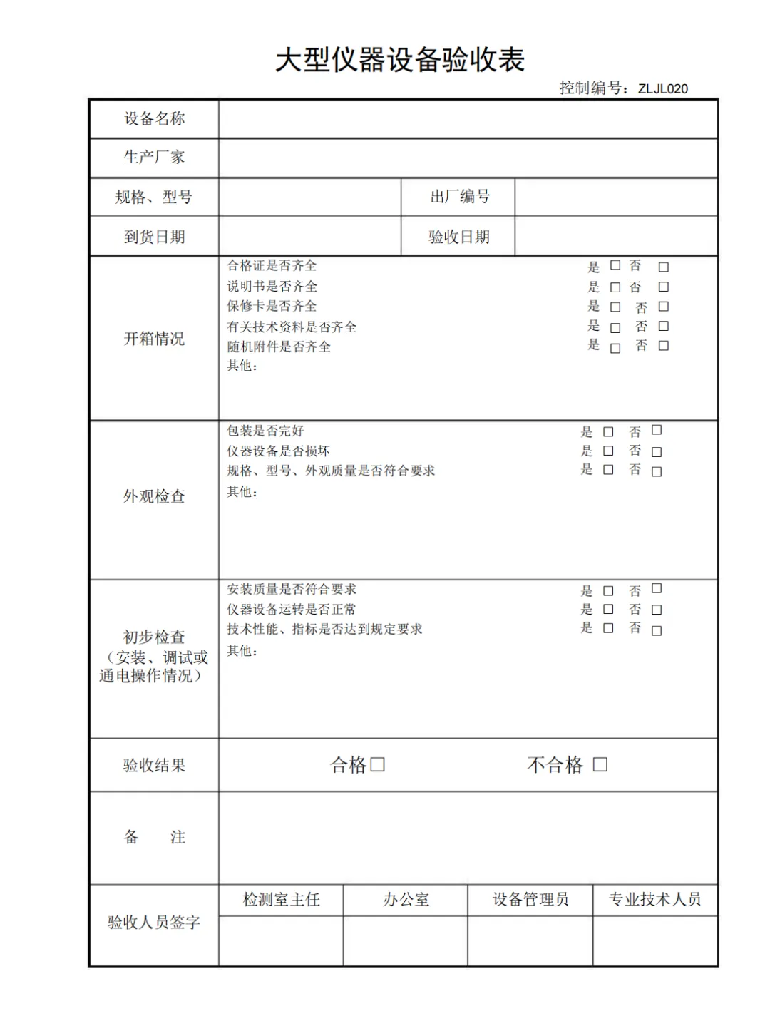 大型仪器设备验收表