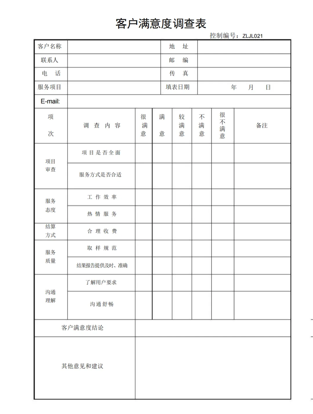 客户满意度调查表
