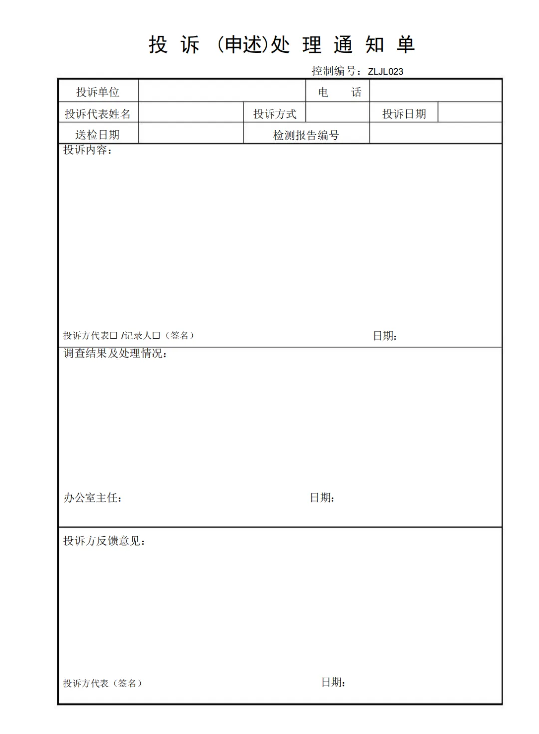 投诉(申述)处理通知单
