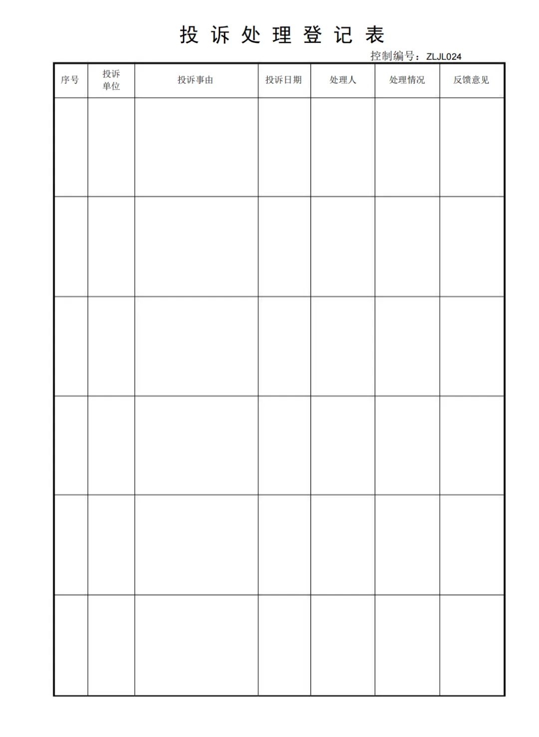投诉处理登记表