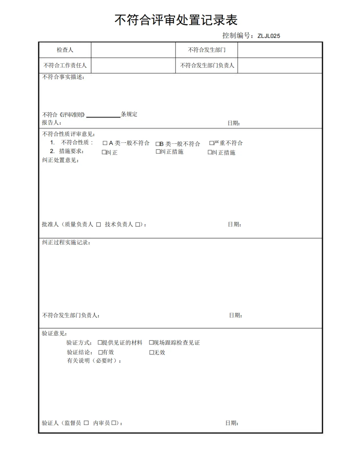 不符合评审处置记录表