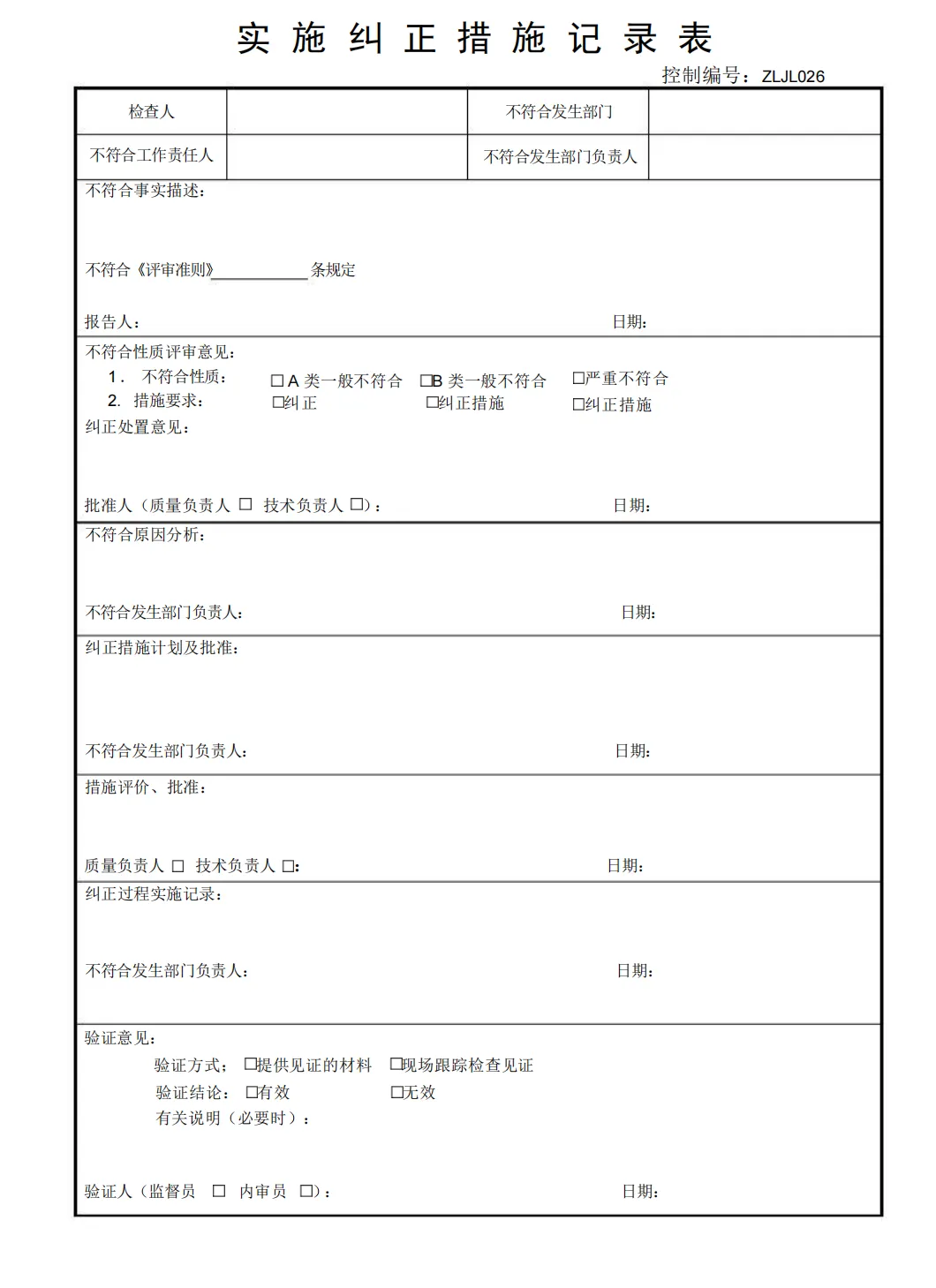实施纠正措施记录表