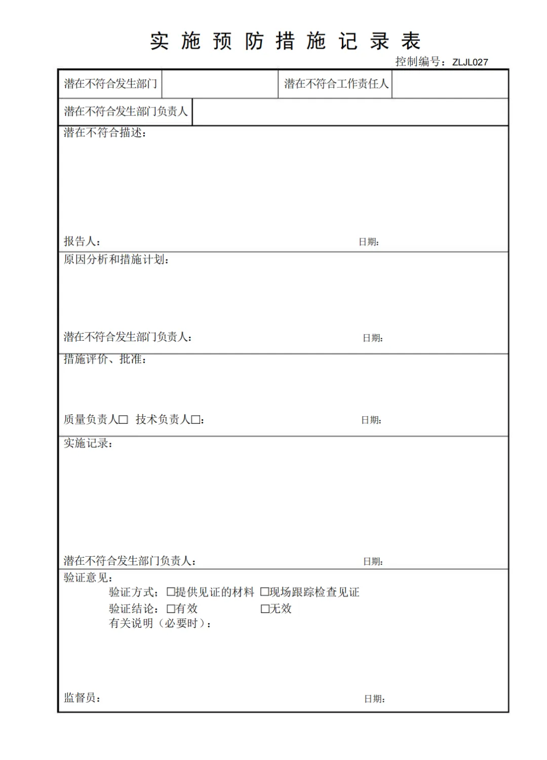 实施预防措施记录表