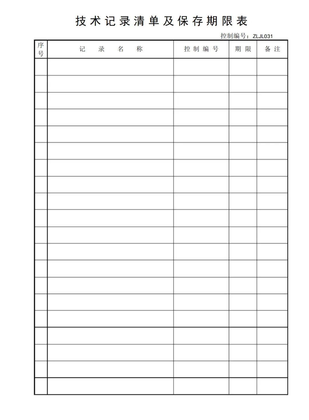 技术记录清单及保存期限表
