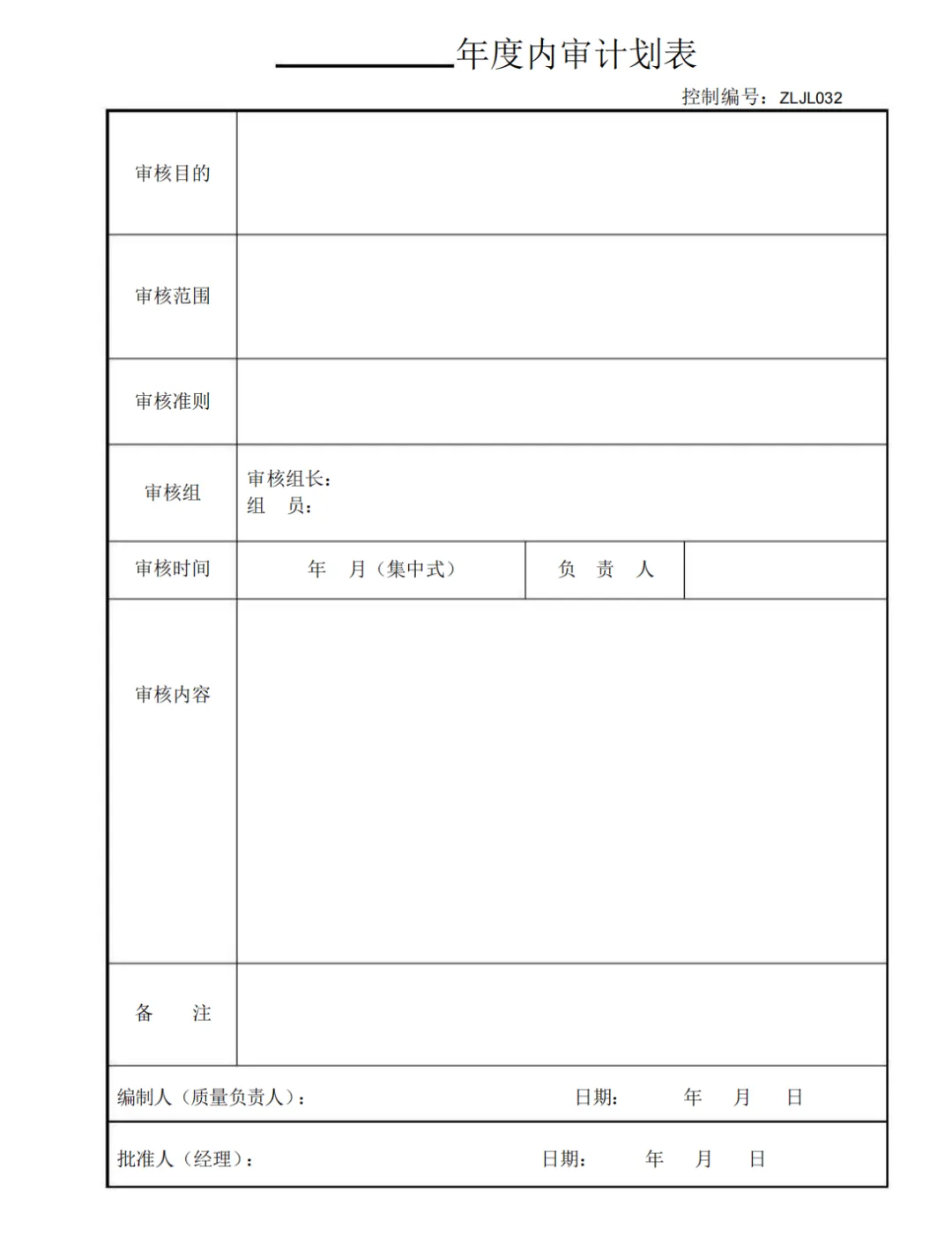 年度内审计划表