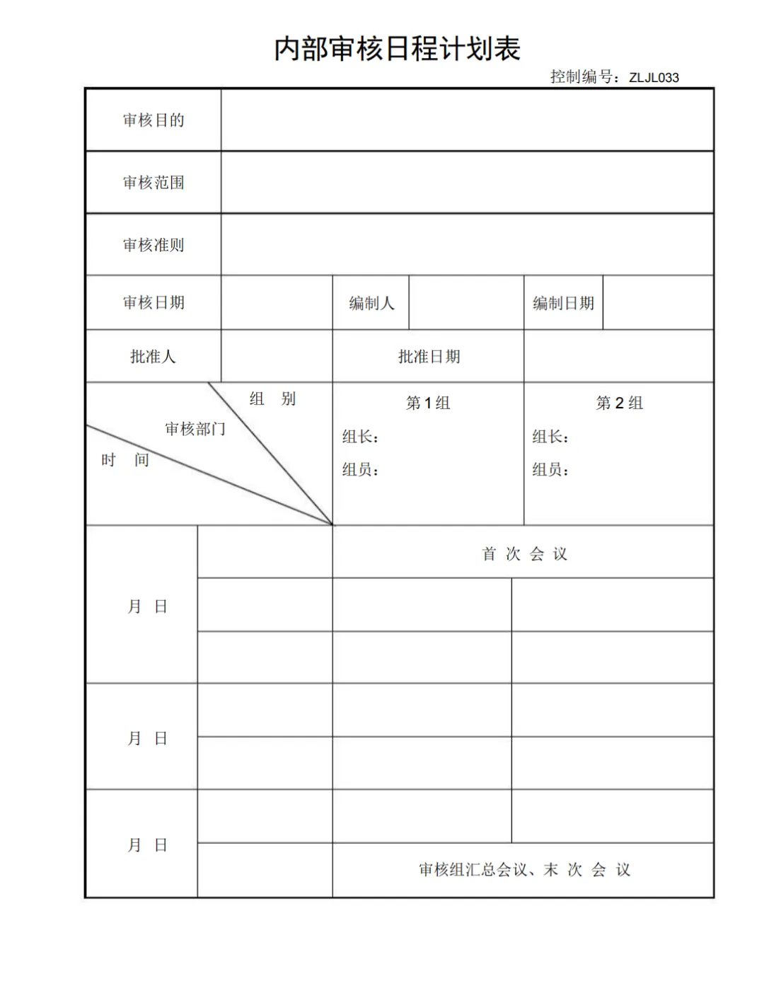 内部审核日程计划表