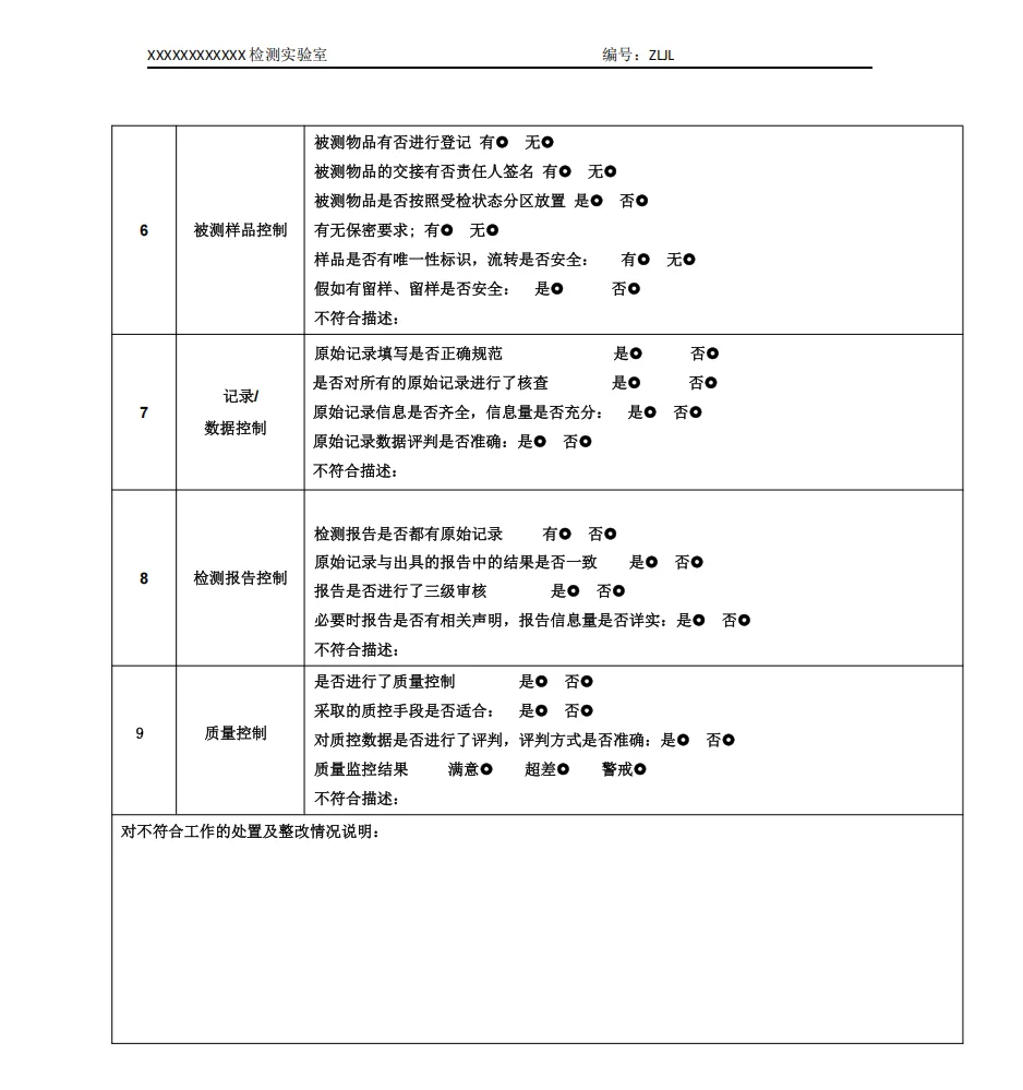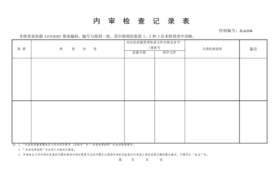 内审检查记录表