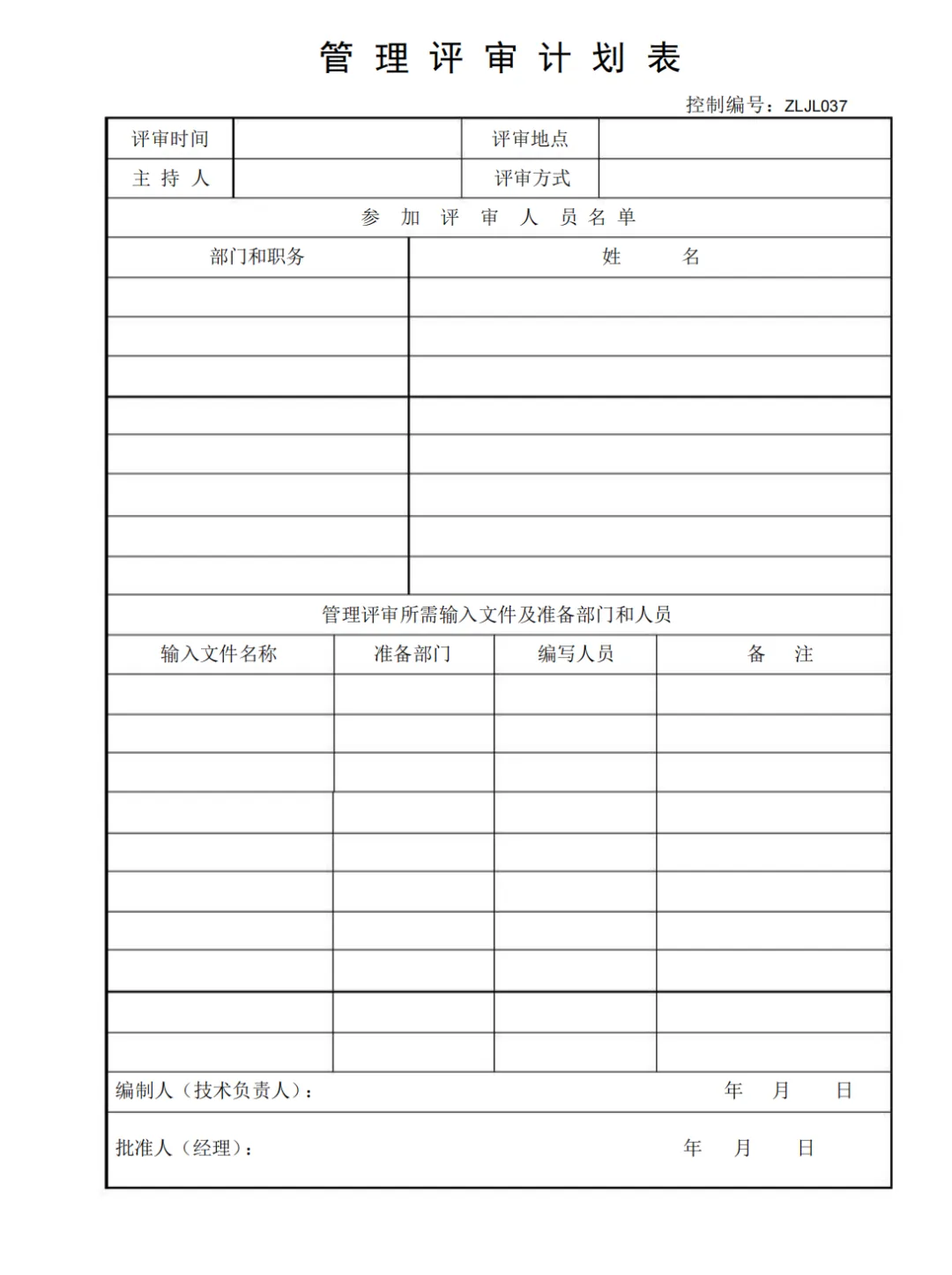 管理评审计划表