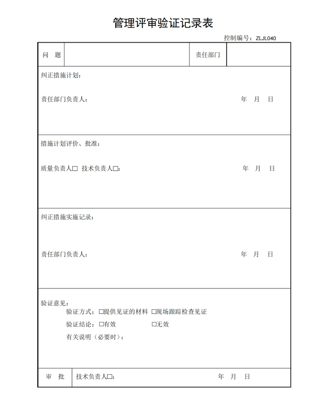 管理评审验证记录表