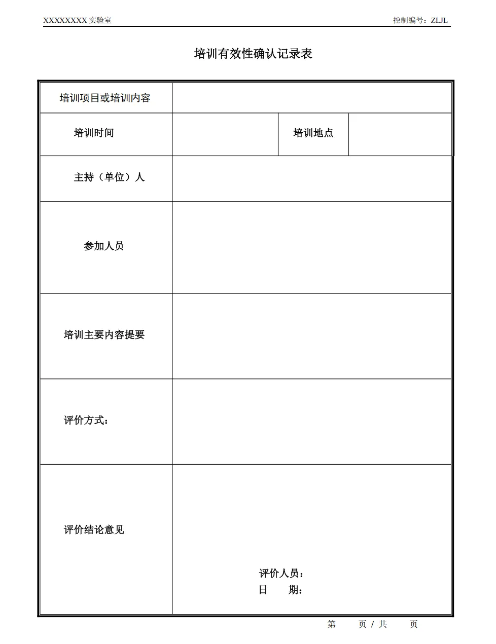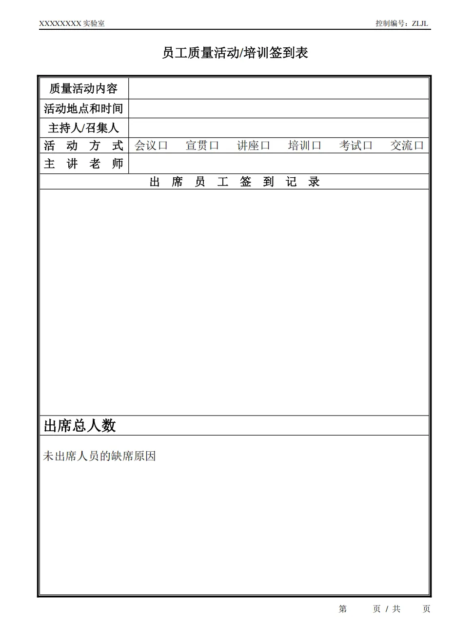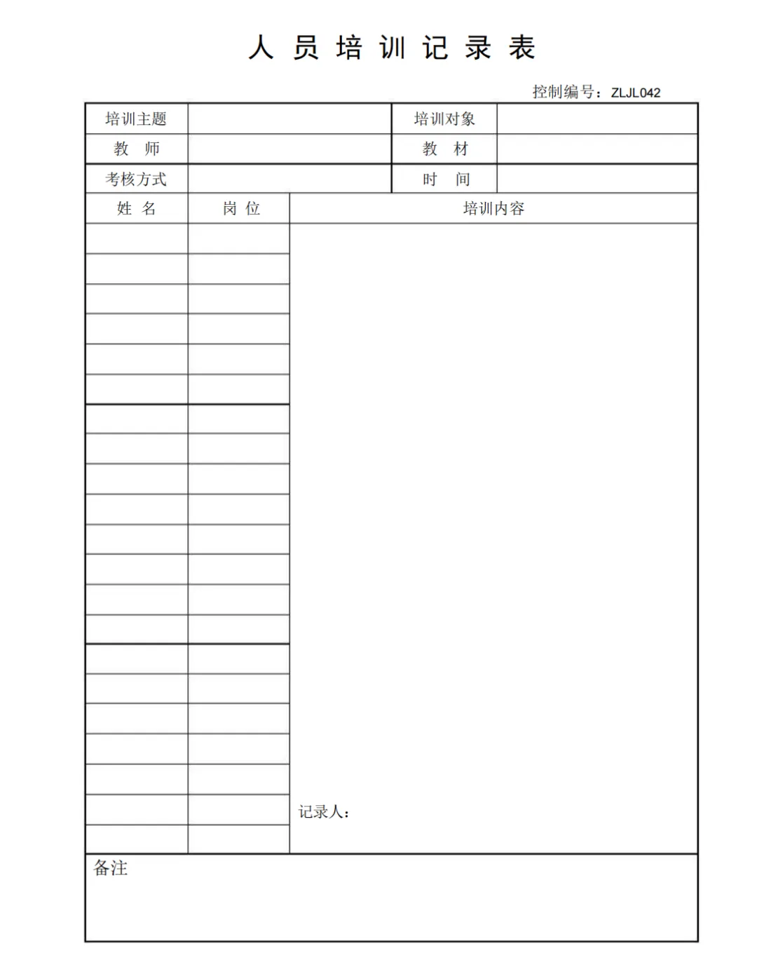 人员培训记录表
