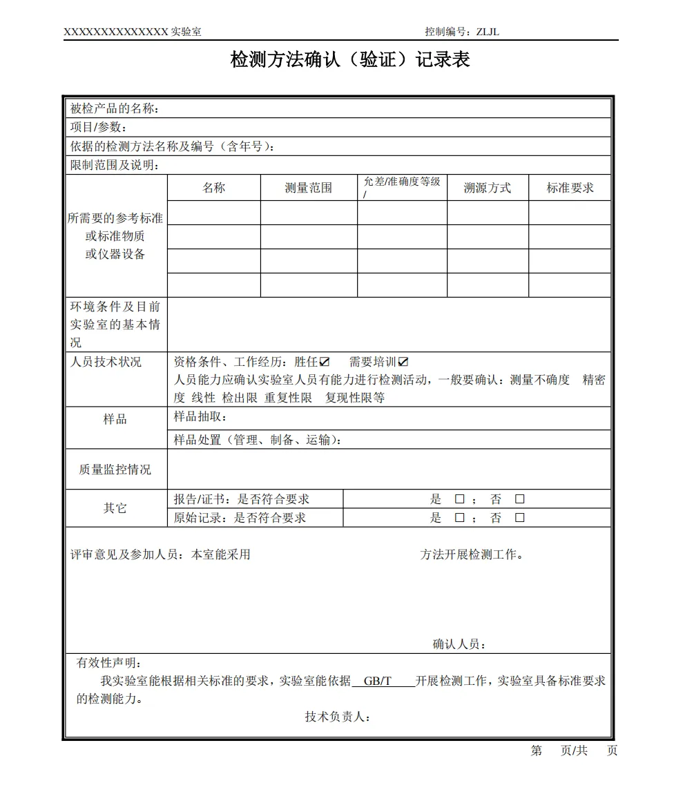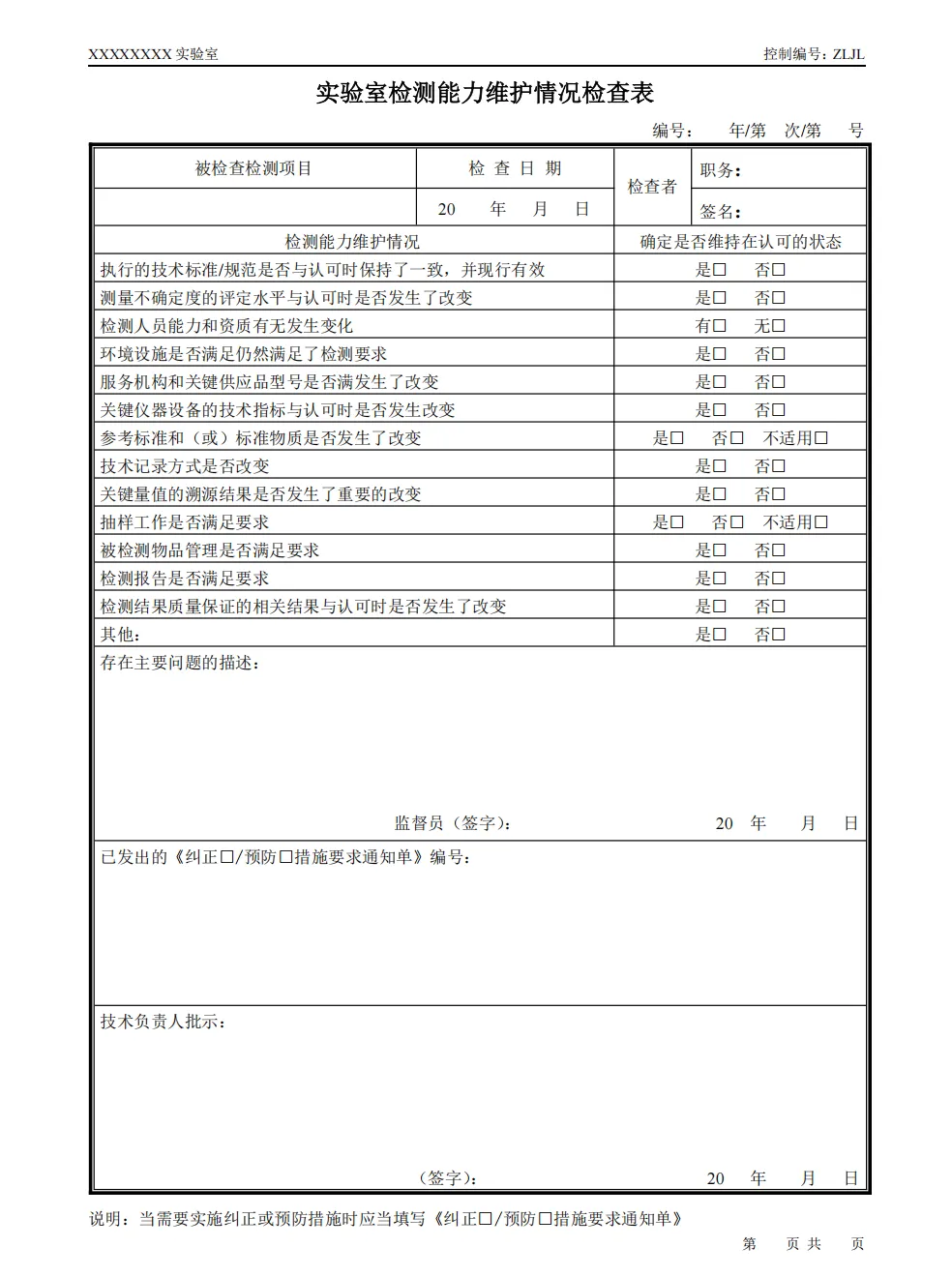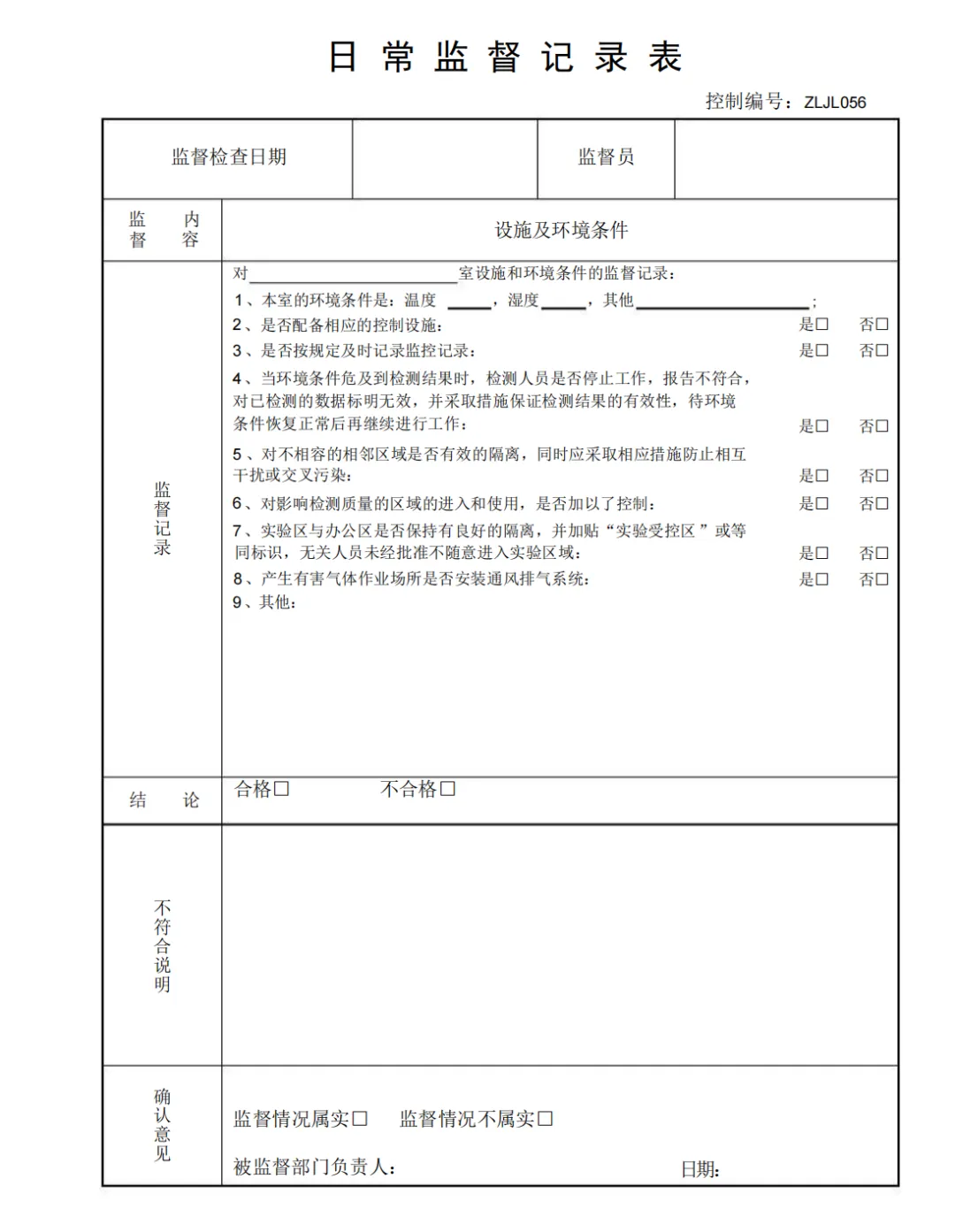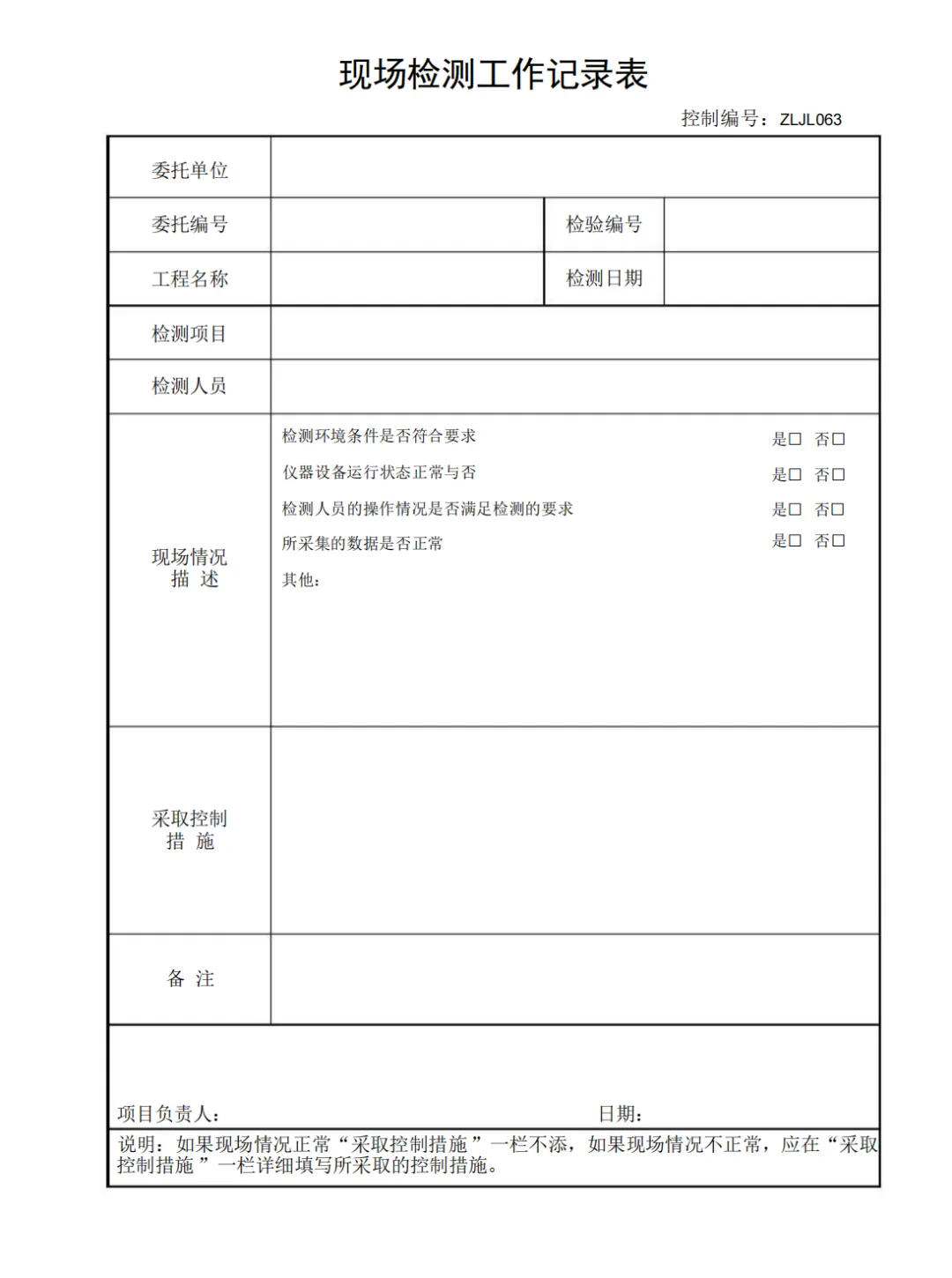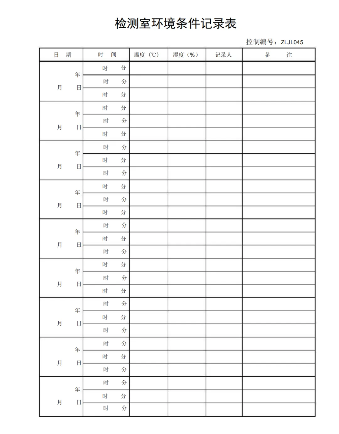 检测室环境条件记录表