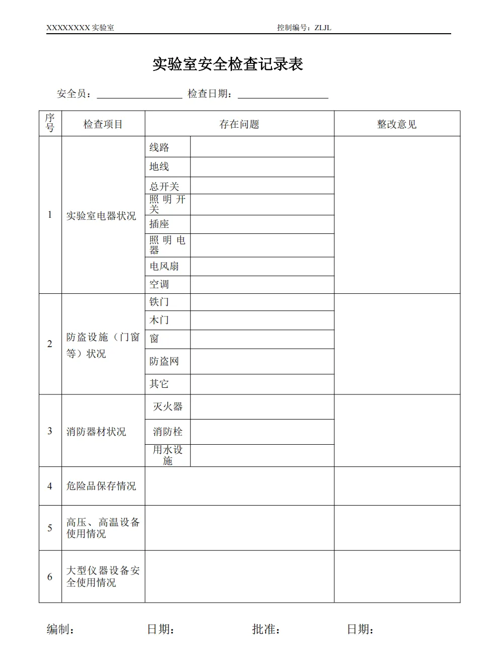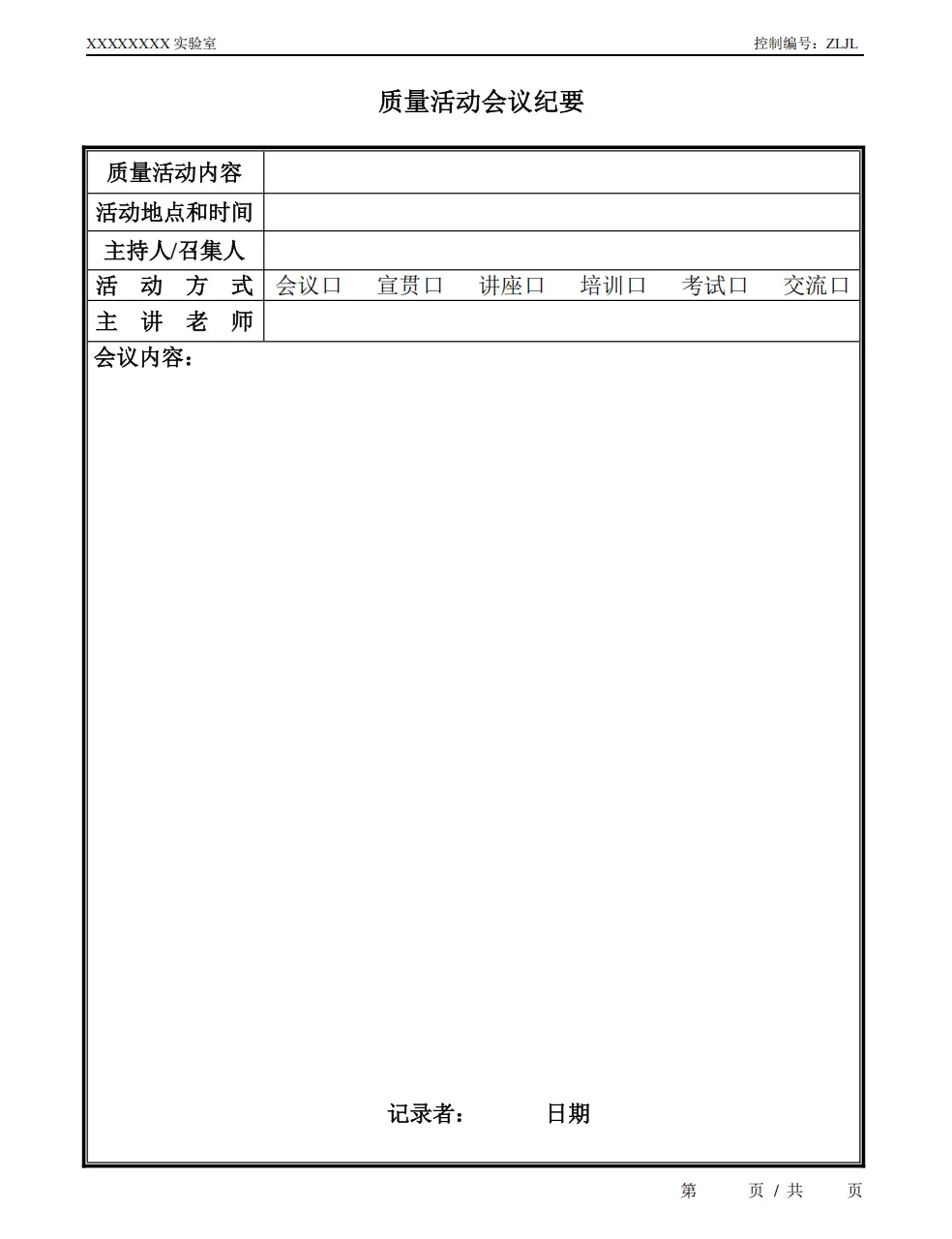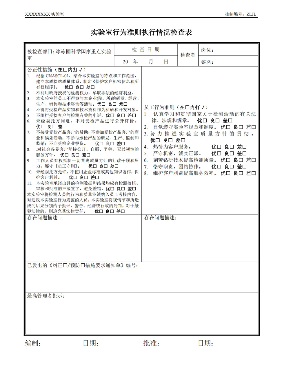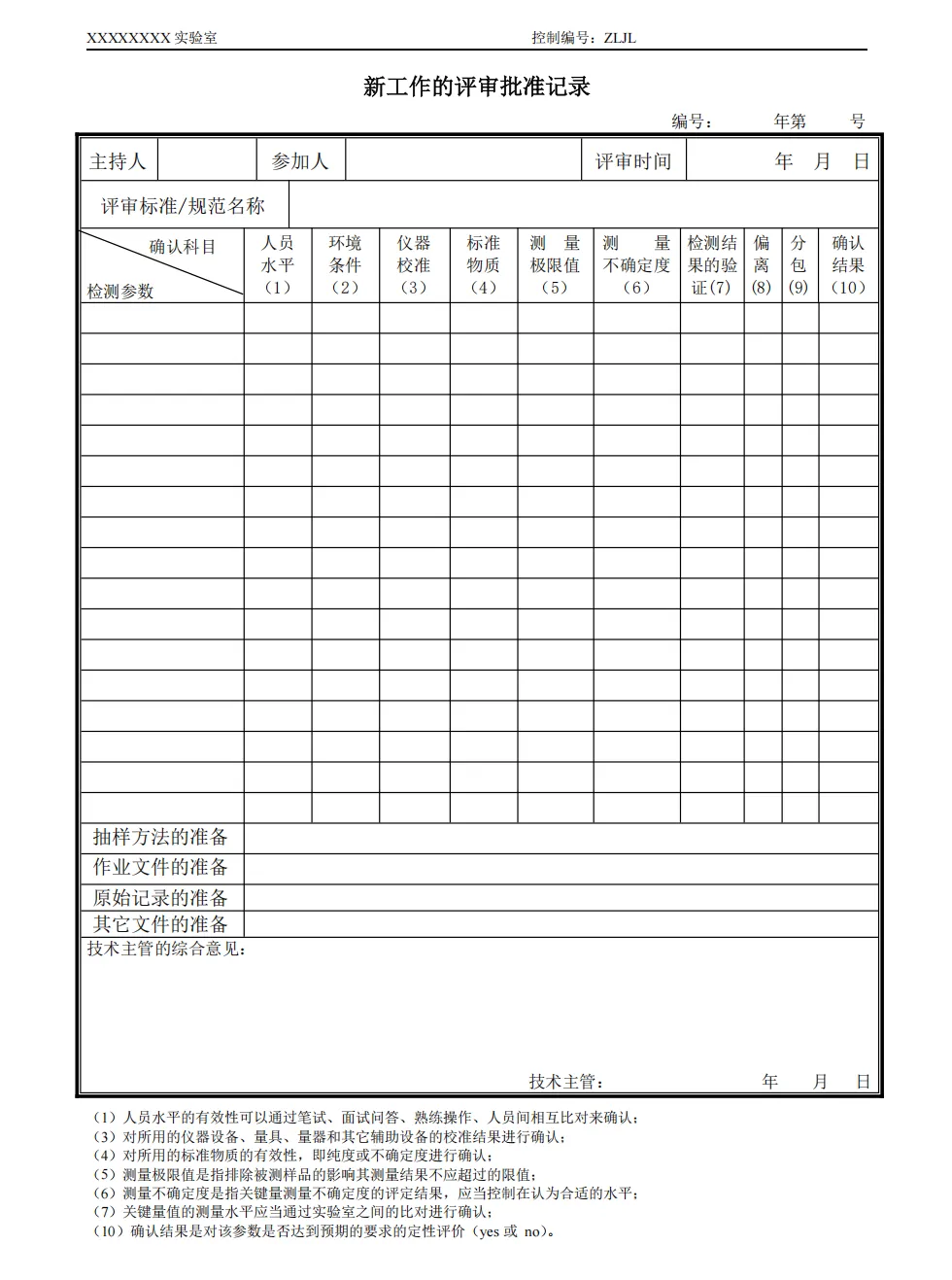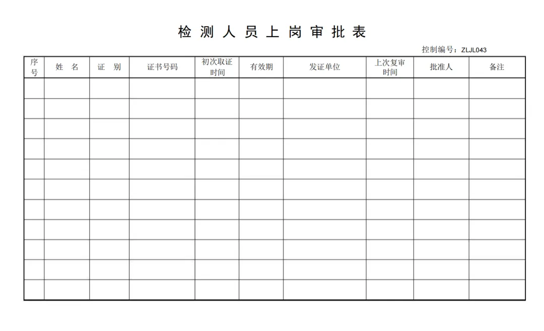 检测室环境条件记录表