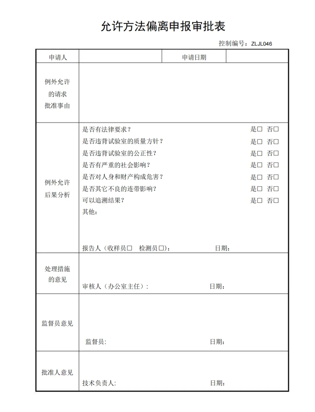 允许方法偏离申报审批表