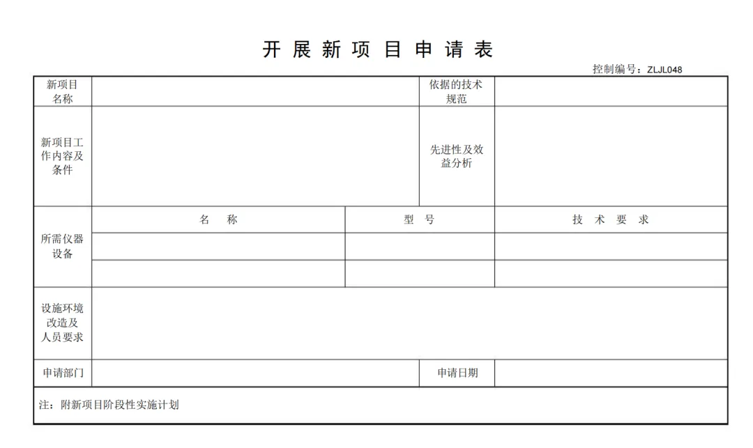 开展新项目申请表