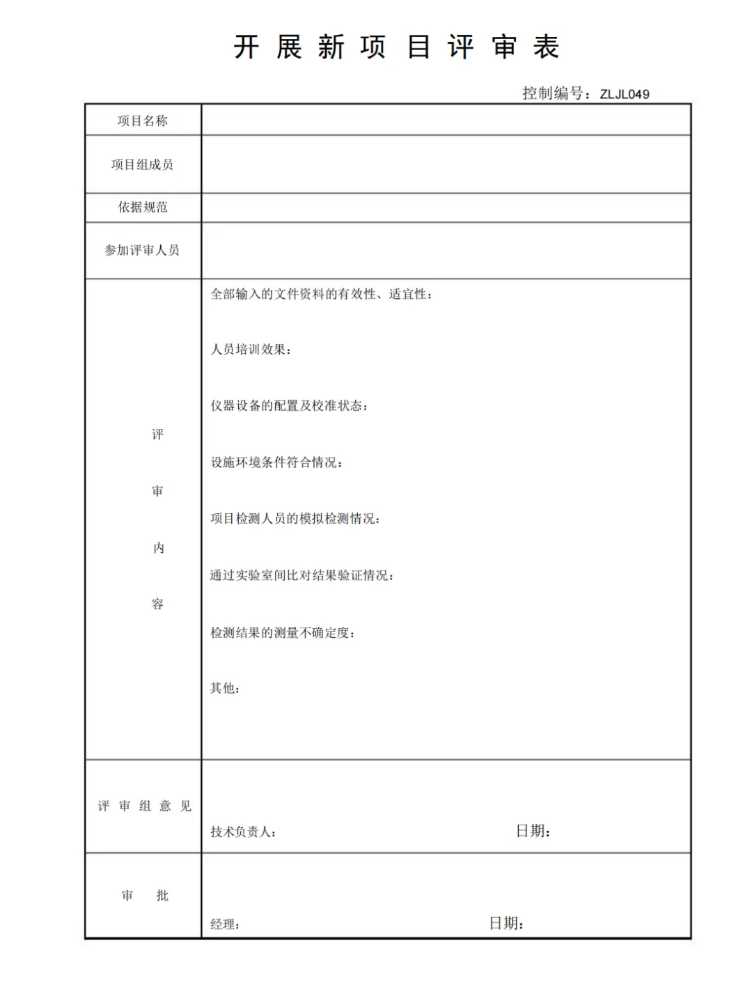开展新项目评审表