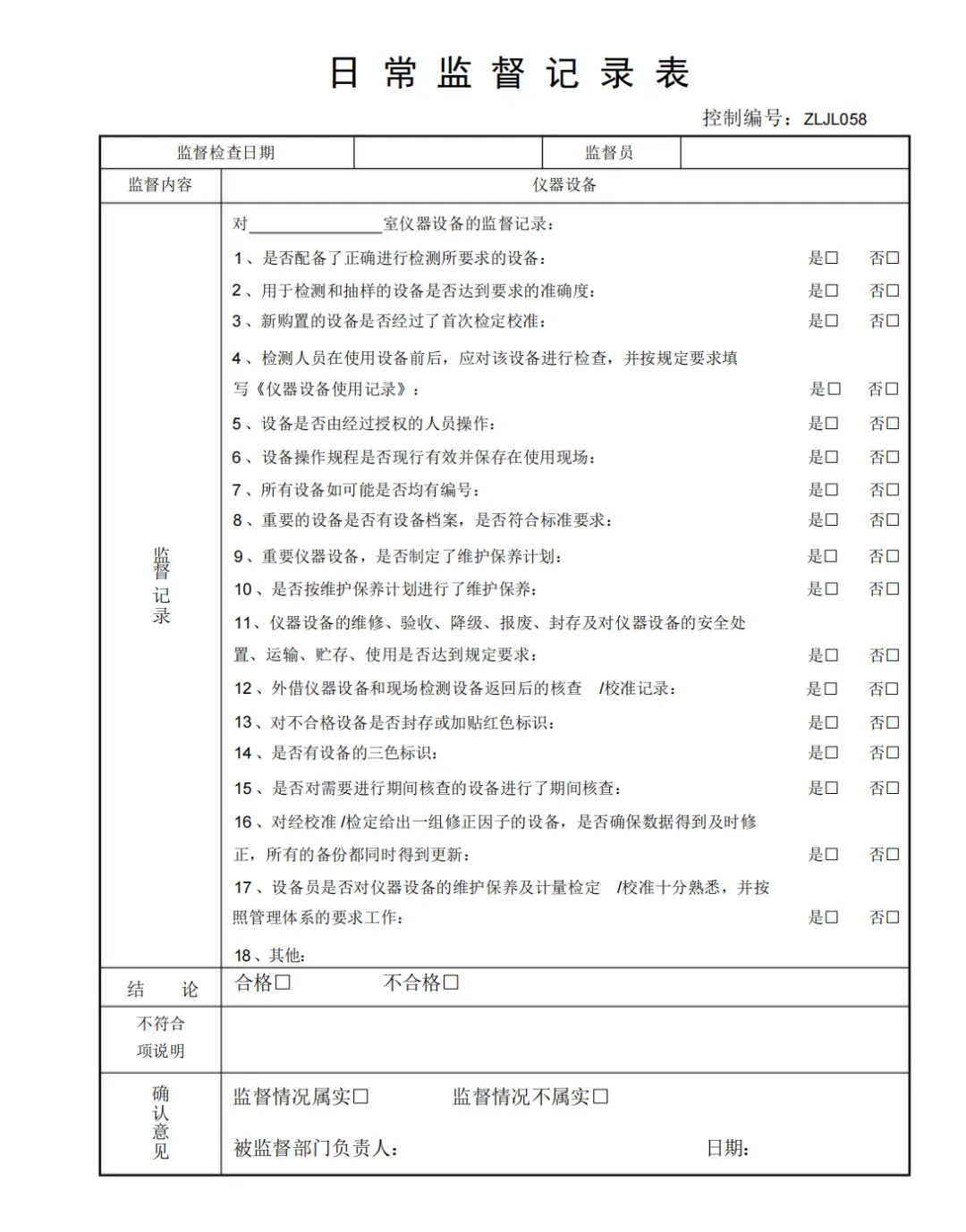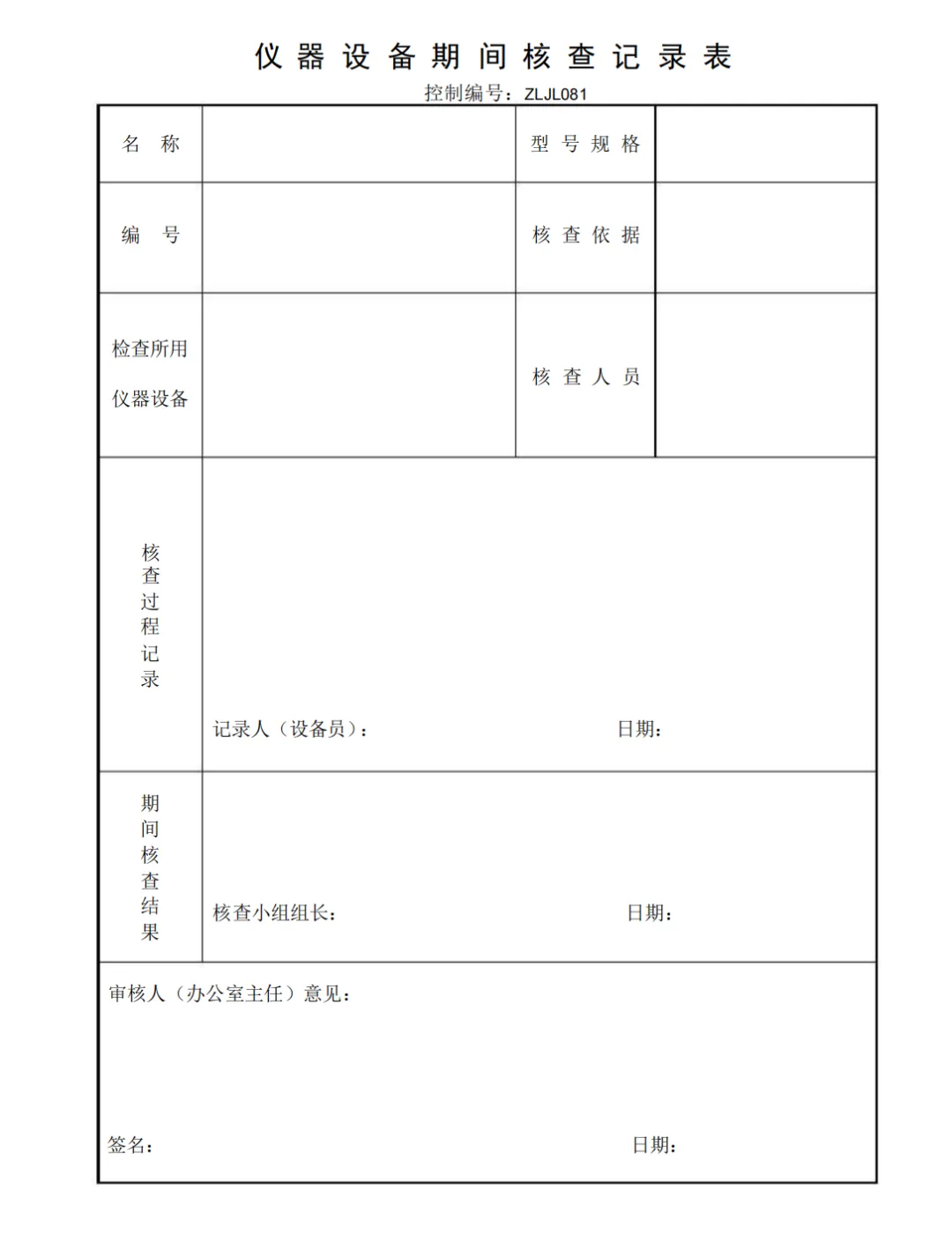 仪器设备期间核查记录表