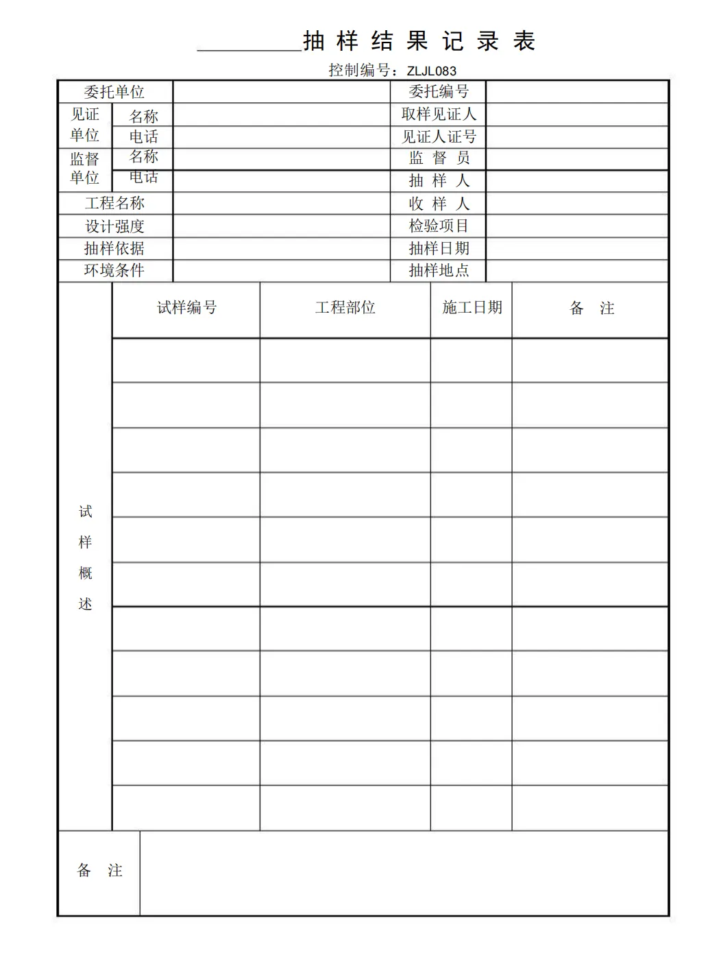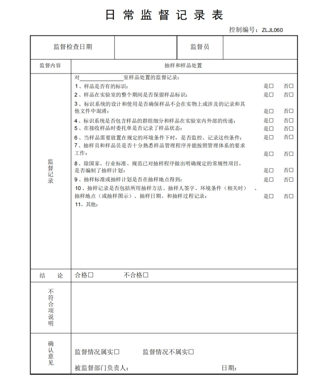 抽样结果记录表