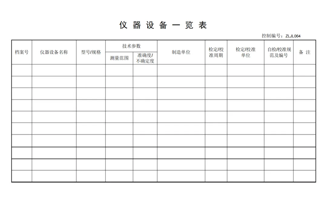 仪器设备一览表