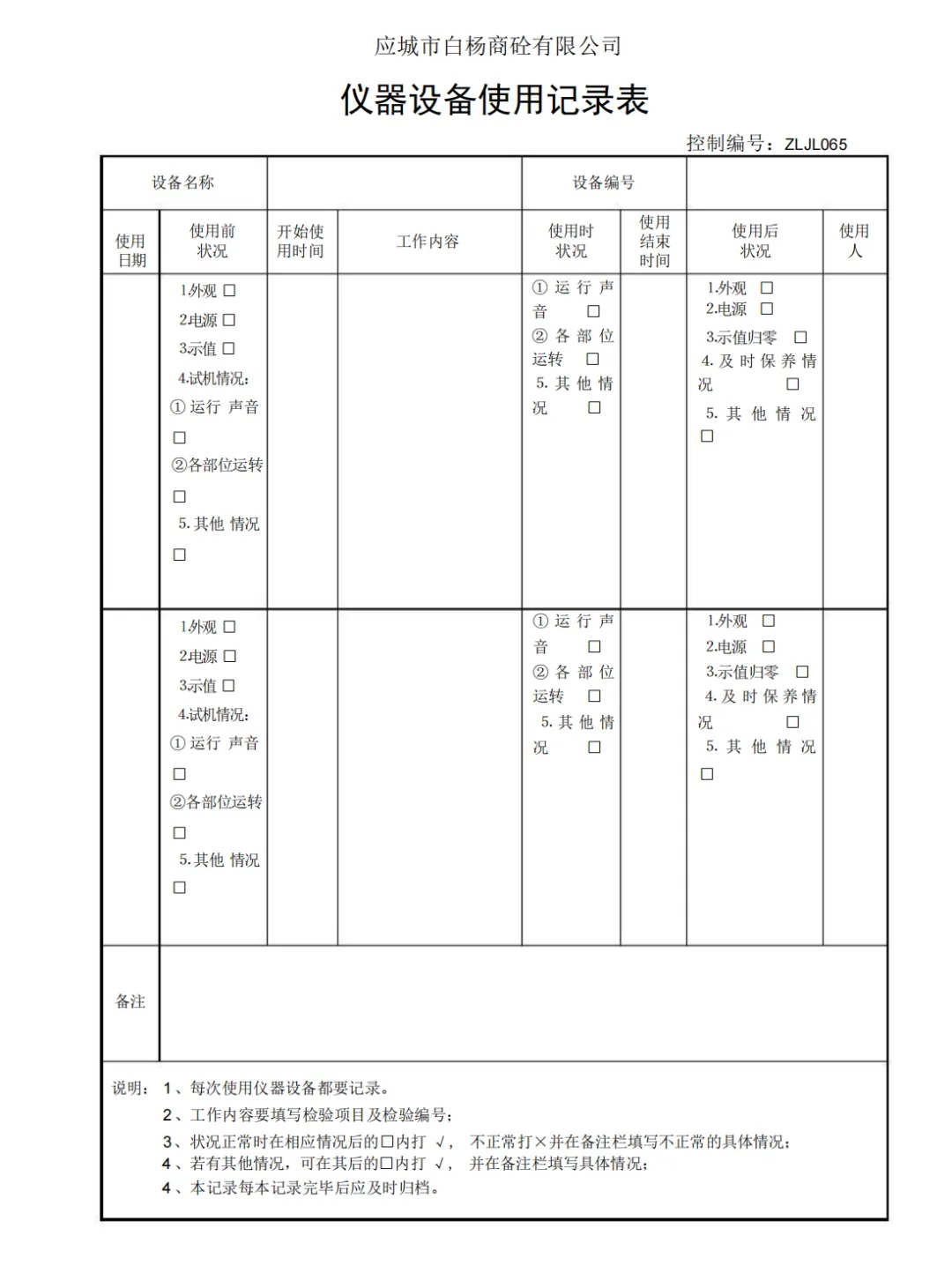 仪器设备使用记录表
