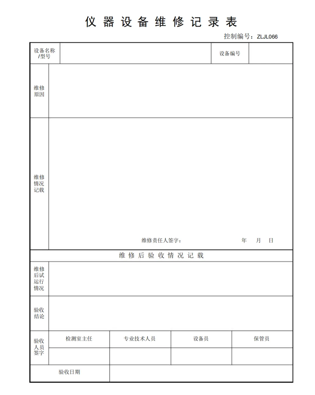 仪器设备维修记录表