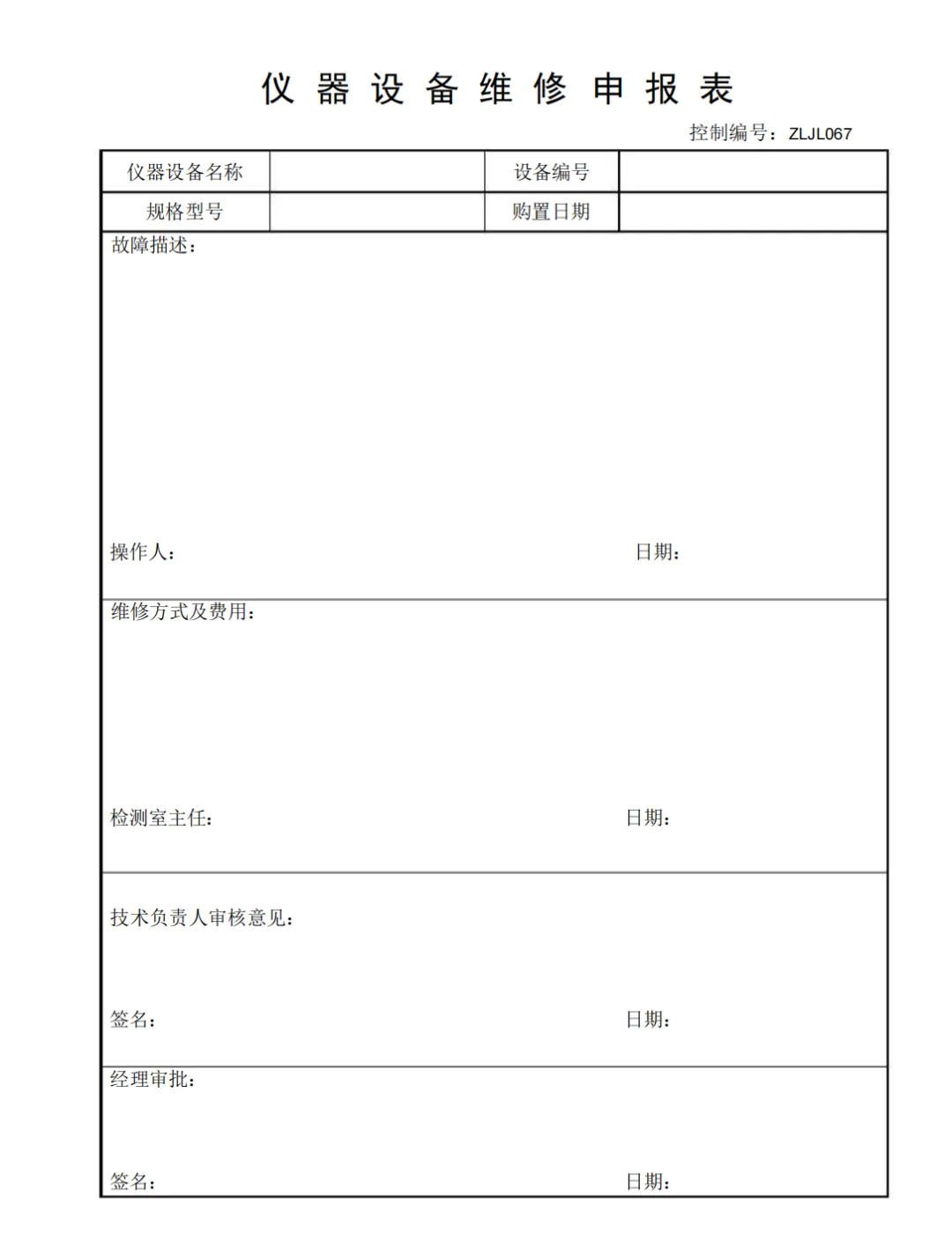 仪器设备维修申报表