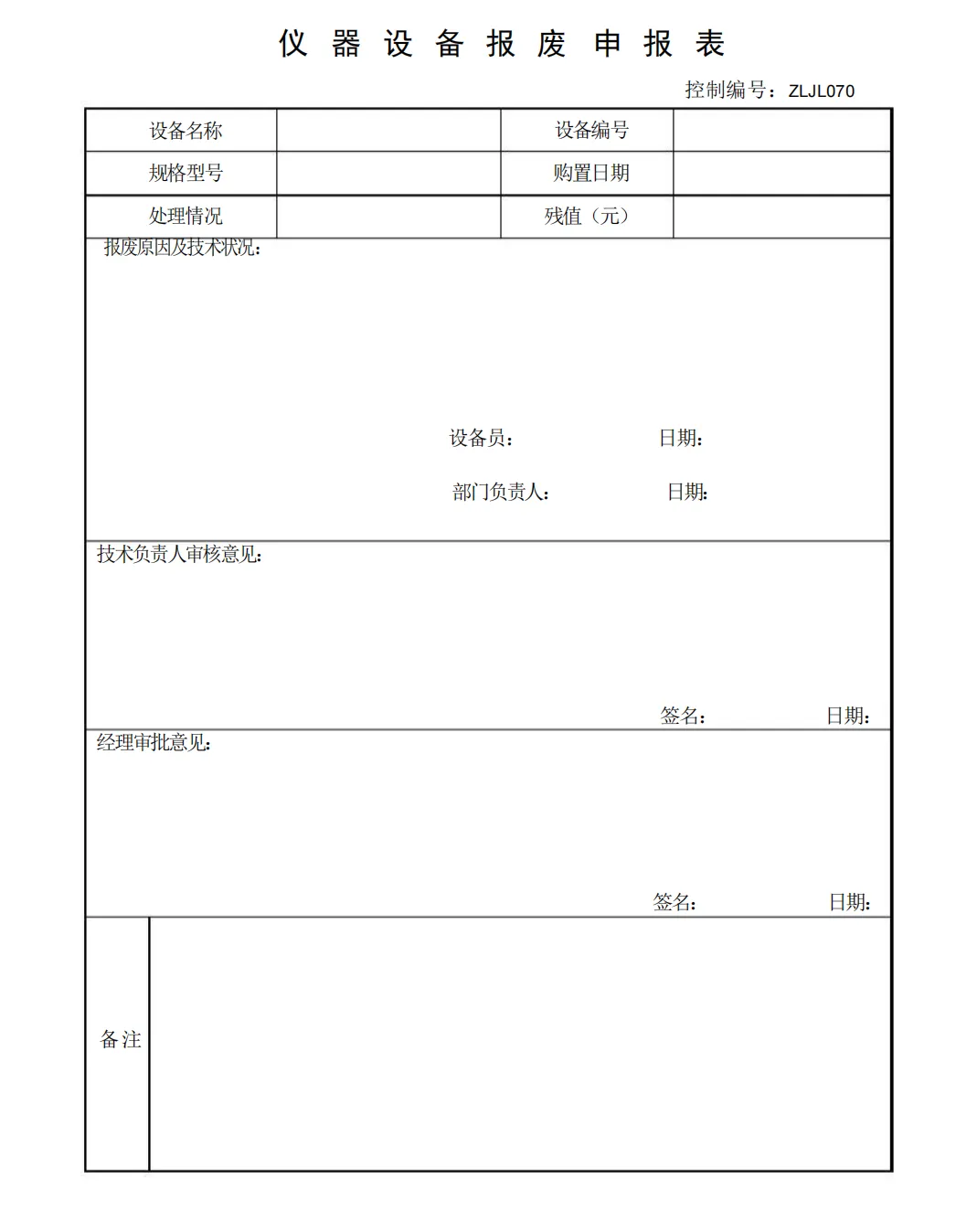 仪器设备报废申报表