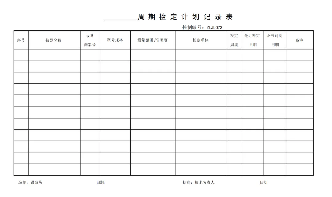 周期检定计划记录表