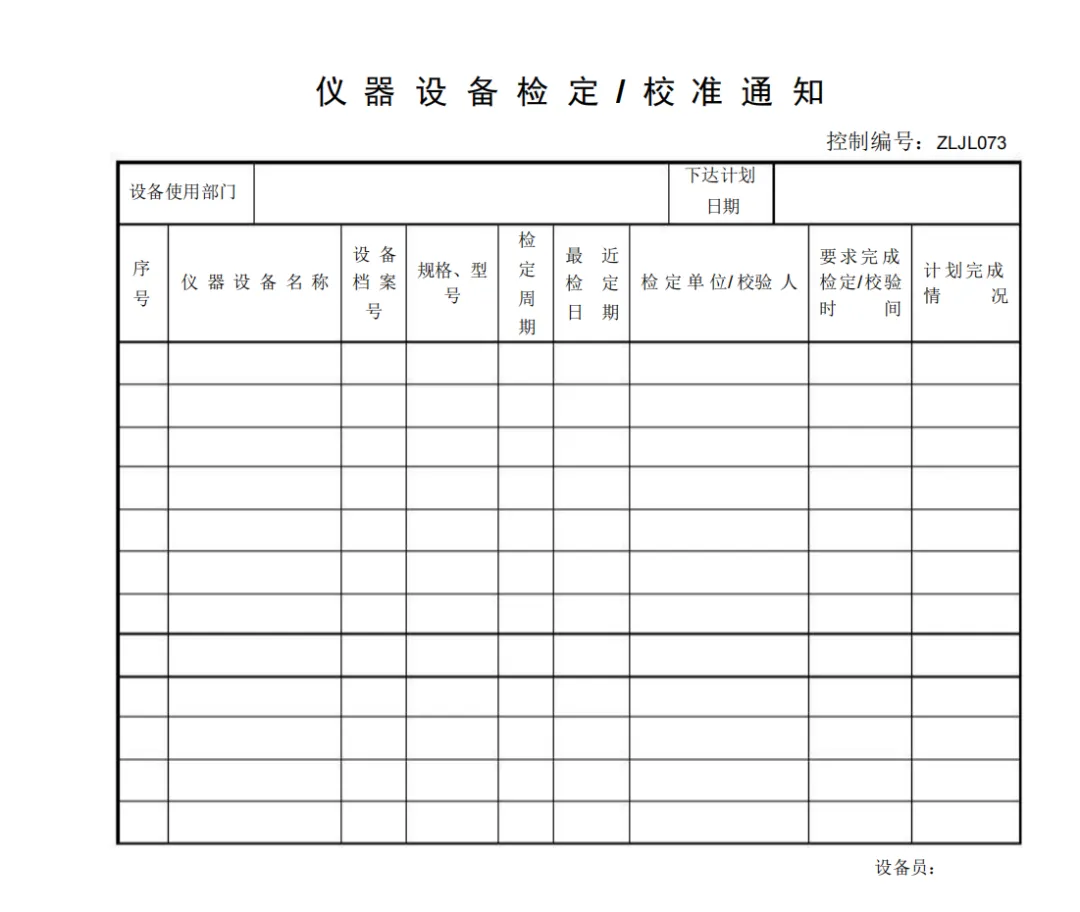 仪器设备检定/校准通知