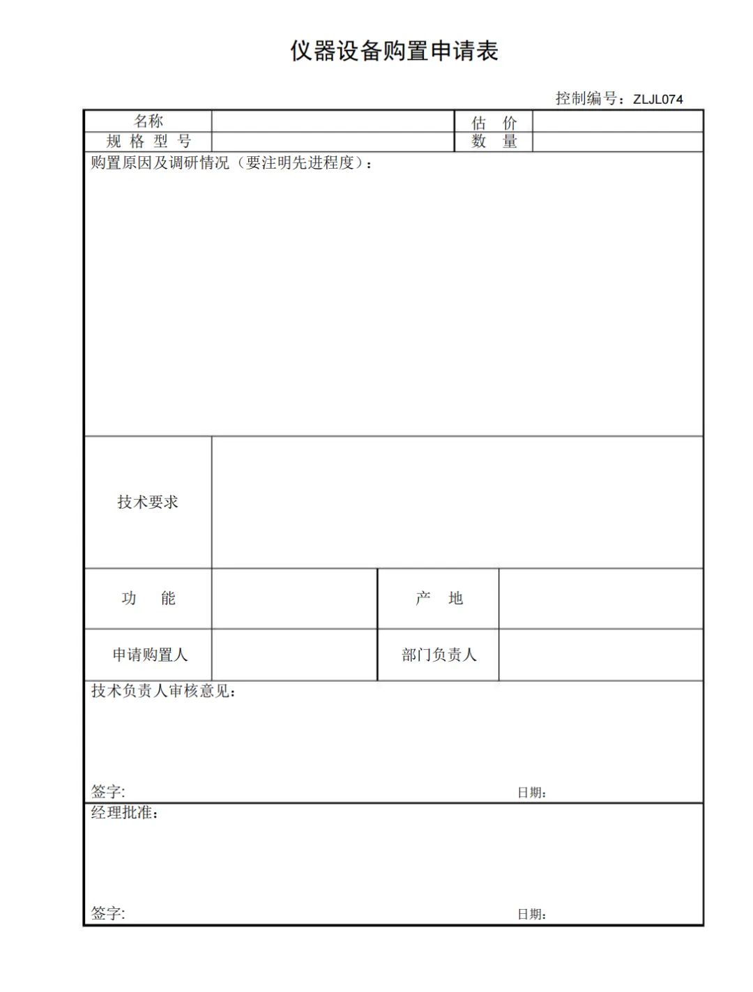 仪器设备购置申请表